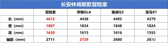 新款冒险家的车身长、宽、高分别为4612*1887*1630mm,轴距为2711mm,除车身长度减少了3mm外,其余尺寸均与其2022款车型保持一致。对标BBA同级产品,冒险家明显大了一圈。