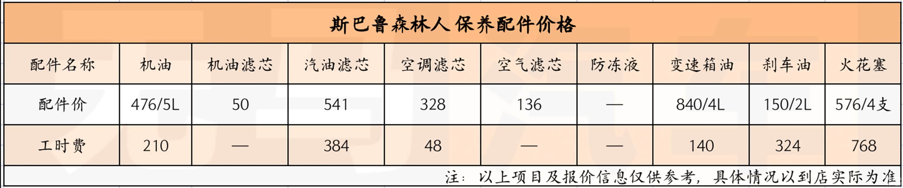从我们制作的图表可以看出,斯巴鲁森林人的配件价和工时费着实都谈不上便宜,但考虑到它是一款进口SUV后,这一切好像又变得合乎情理了,过于在乎性价比的消费群体应该也不会将它列入选购名单中。