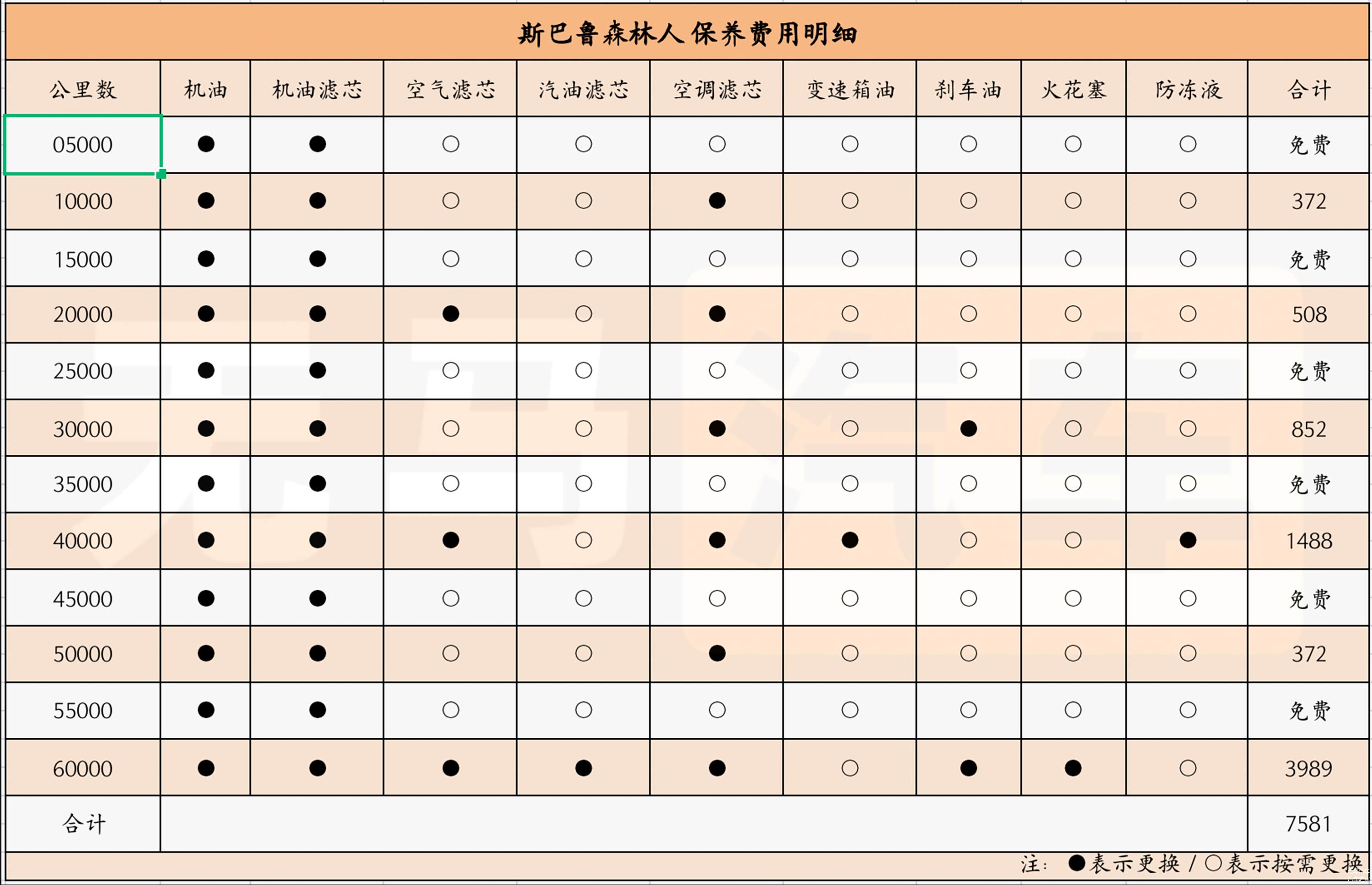 从表象看,斯巴鲁森林人后期的养车费用会偏高,但实际上,在斯巴鲁官方提供5年/75000公里的免费基础保养服务后,它每个月1730元的养车支出还算可以接受,属于同级车型偏低的水准。