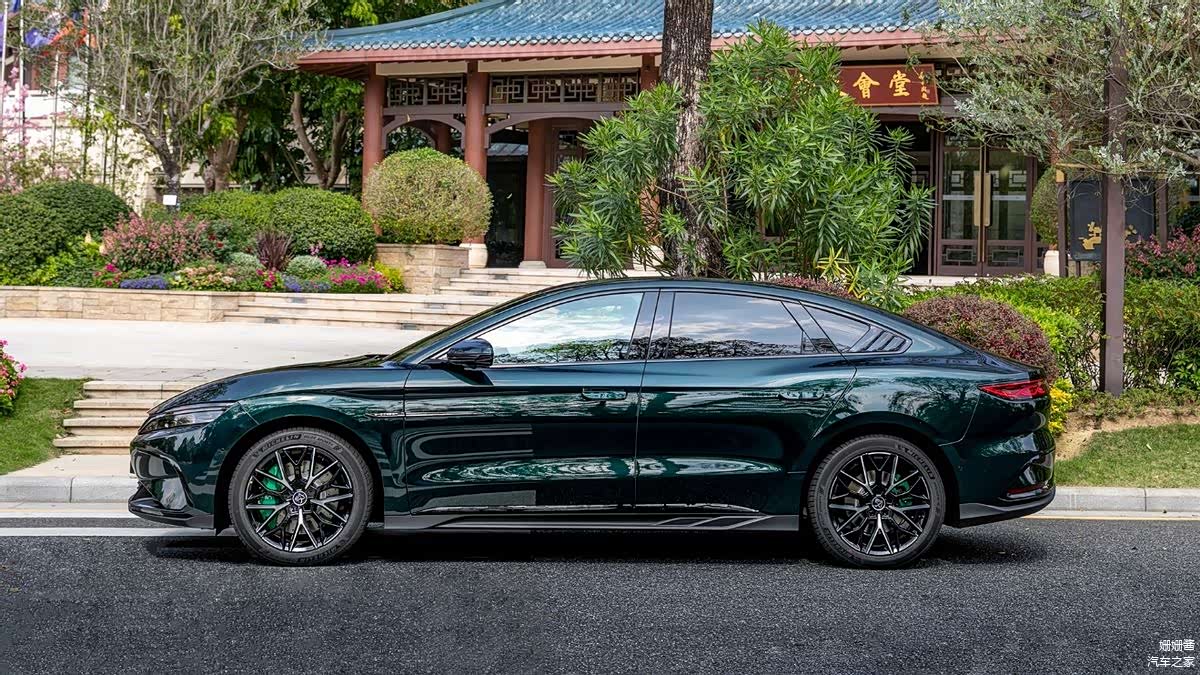 比亚迪汉定位中大型车,能源类型可选插电式混合动力和纯电动。
