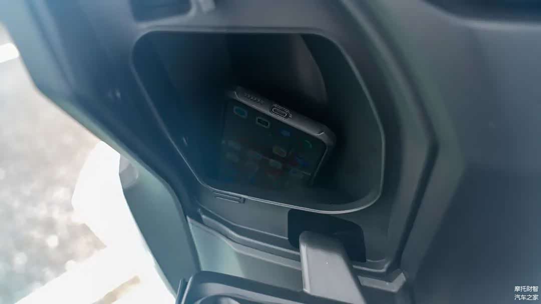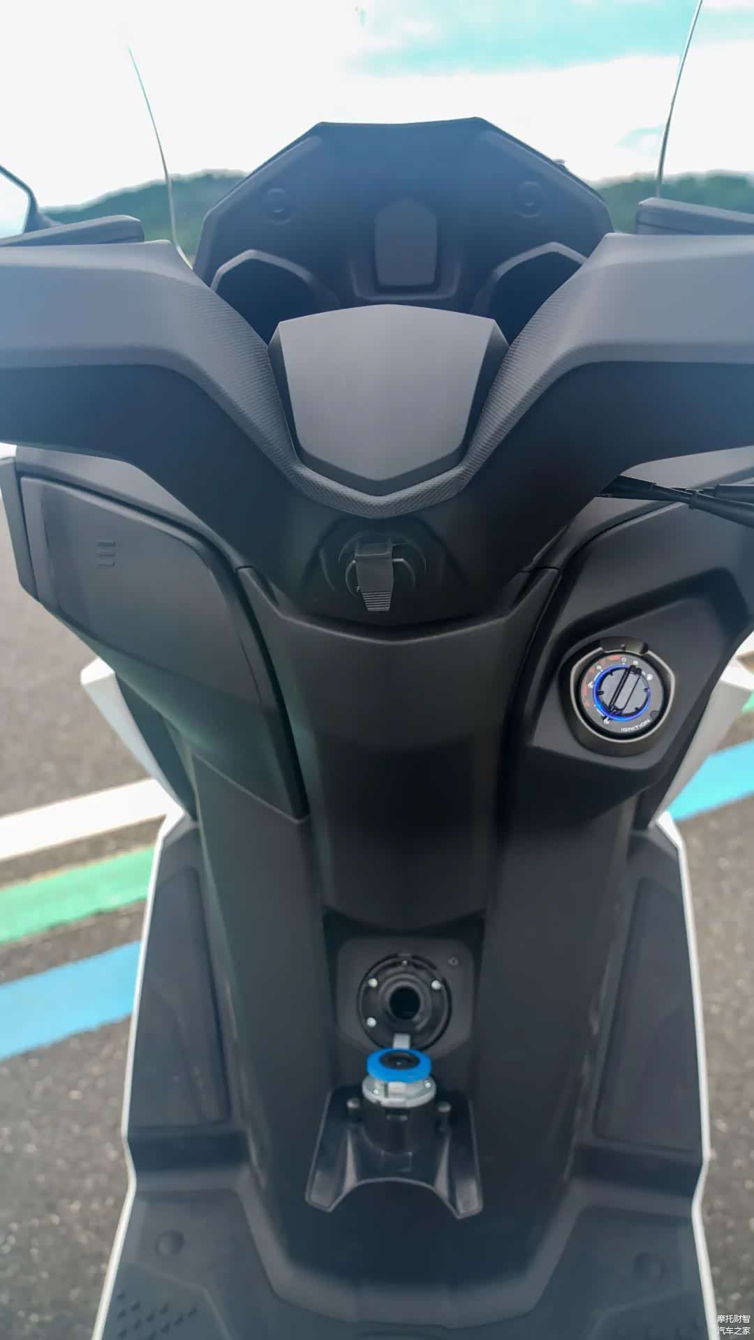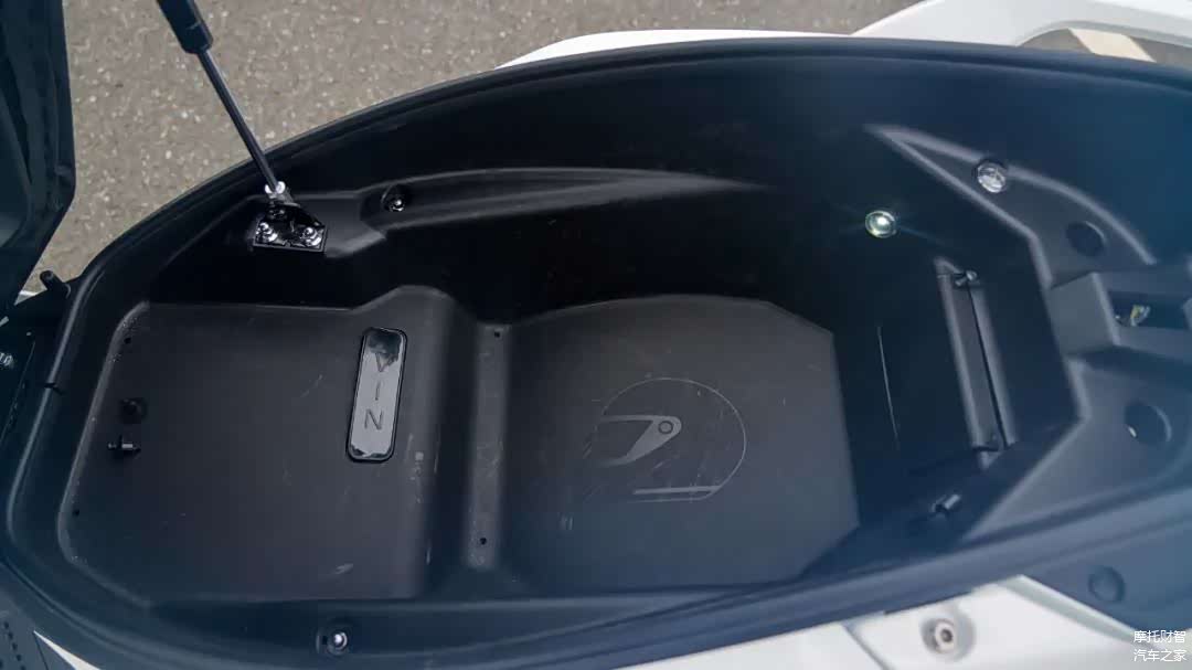 座桶空间可观,能放下一顶全盔还有一定余量。座桶盖带液压撑杆,内部有一个LED照明灯,都是非常贴心的设计,油箱容积10.5升。