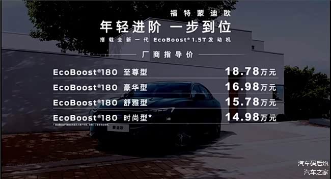 主编意见: 福特蒙迪欧(图片 | 参数 | 询价)1.5T车型上市,居然把价格杀到了15万以内,14.98万的价格在合资A级车里也很普通,更别说这个价格能买到一辆耳熟能详的合资B级车了。那么作为消费者,只要手头有燃油车指标的,你是买呢还是买呢还是决定买呢?而且相比之的三缸引擎系列车型带来的影响,这次的1.5T蒙迪欧踏踏实实的回到了四缸机的队伍中,是不是感觉靠谱了很多?最后可能就是看配置了,最丰富的至尊版也仅仅比起步价贵了不到四万。估计此时,大部分准备买A级顶配的消费者,都会动摇了吧。