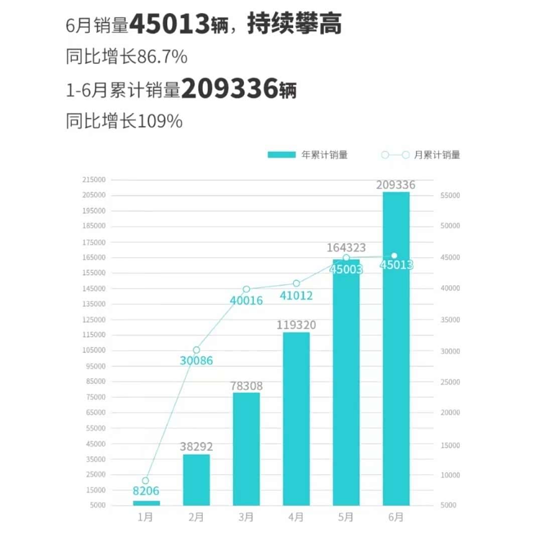 其中的埃安,销量数据就相当亮眼,在刚刚过去的6月份取得了45013台的成绩,同比增幅达到86.7%,再看今年1-6月份,埃安品牌的累计销量更达到了209336台,同比增长达109%。显然,无论是市场份额的表现还是销量的增长幅度,埃安都可以靠实力说话。