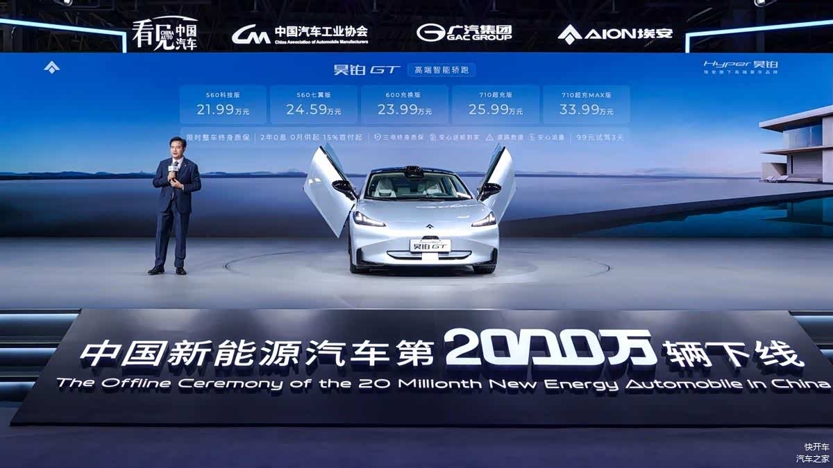 承接了第2000万辆下线中国新能源车殊荣的车型,正是Hyper昊铂的王牌车型 昊铂GT(图片 | 参数 | 询价),7月3日正式上市,售价为21.99万-33.99万。而Hyper昊铂背后的广汽埃安,自2017年成立以来更是创造了超120%年均复合增长率,如今更是以现代化新国企代表的身份,和民企代表比亚迪、外企代表特斯拉一起,成为了新能源时代的BAT三巨头。