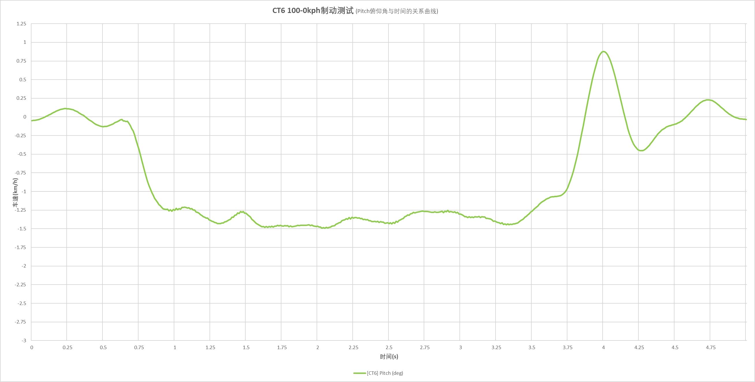 在紧急制动项目上,半干的沥青路面下测得36.2米的制动成绩,上图为整个过程中的俯仰角,波峰少,整体平稳体感舒适。延续上面说的刹车感受,这台5米多长的庞然大物的刹车距离很短,但又能在那么大的减速度下维持车身姿态稳定,感受上是车辆整体下沉刹停。