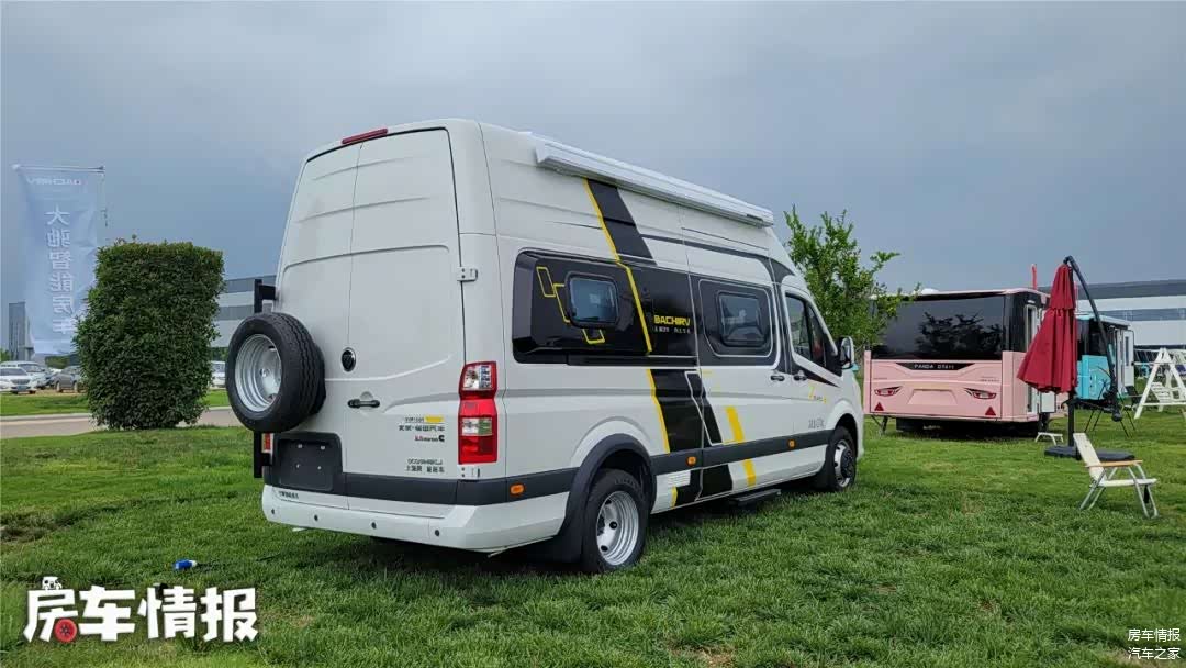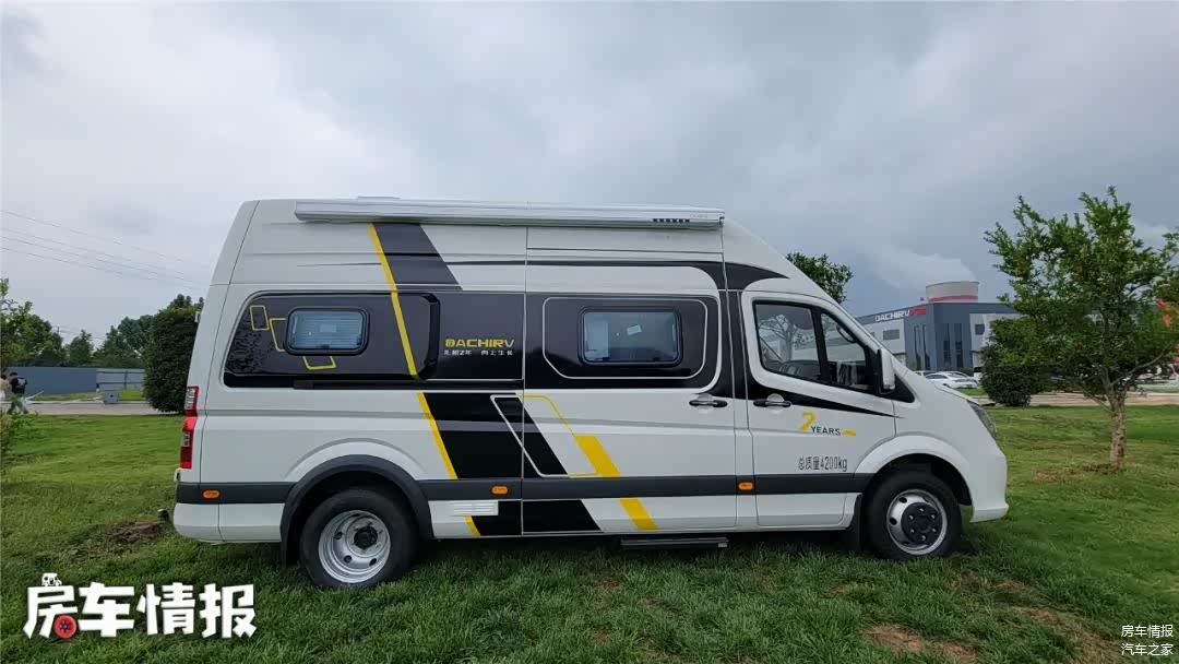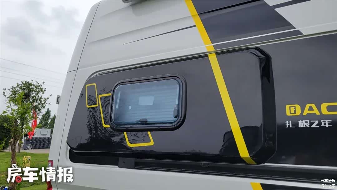 车身两侧大面积的黑黄拉花,提升了整车的视觉效果,搭配上车身尾部的外挂式备胎,令整车看起来很有欧式Vanlife的风格,相信不仅会吸引中老年人的喜欢,即便是年轻人也会比较中意这款。