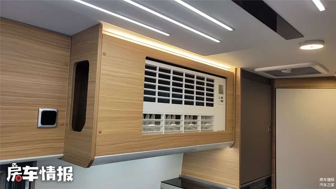 厨房上方还提供了一台48伏房车专用直流变频空调,由于整车采用了48伏电路系统,在不开启逆变器的情况下,也可以使用空调,提升了日常使用的便利性。