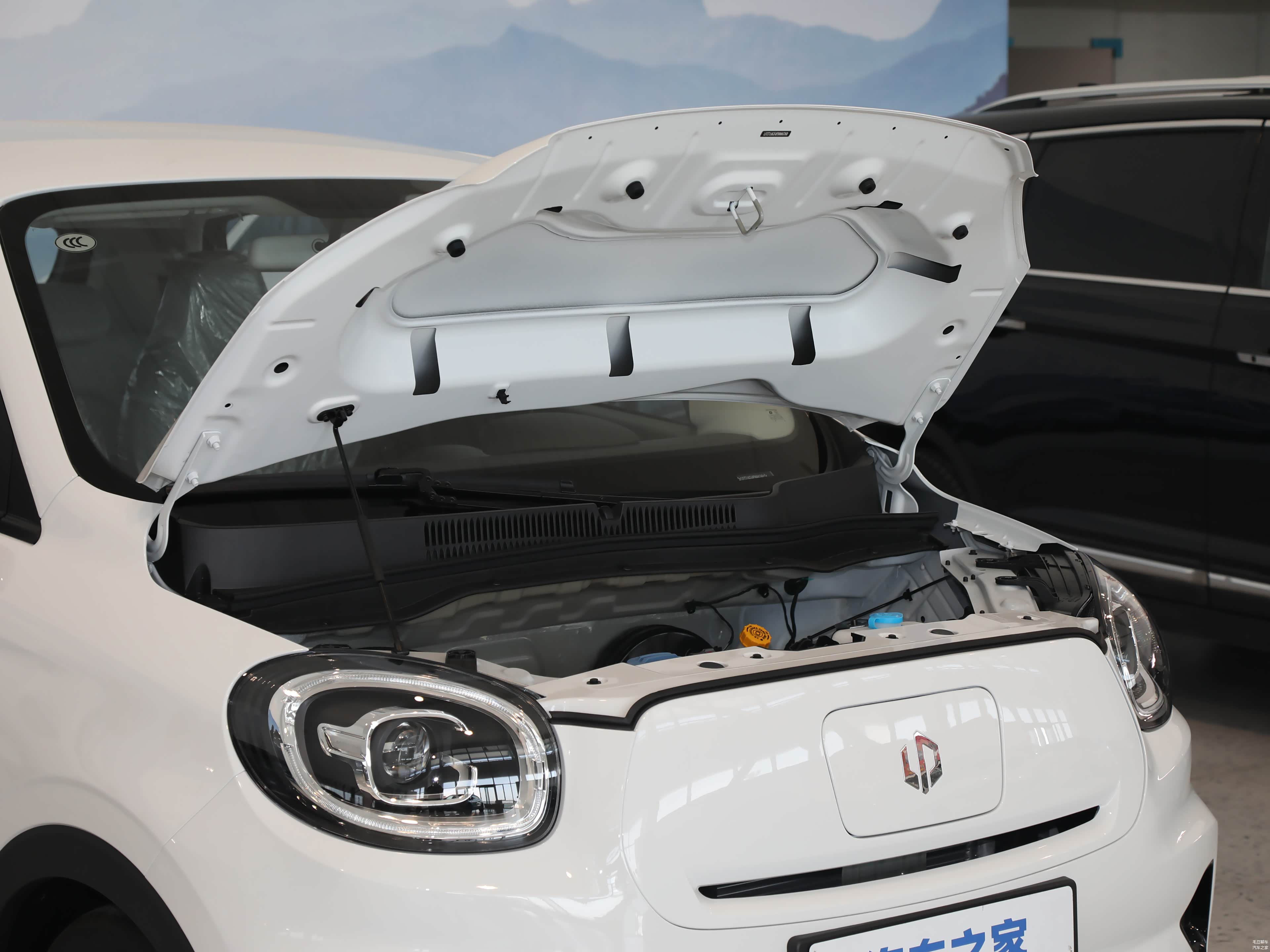 外观方面,前脸采用封闭式格栅设计,两侧的大灯设计很圆润,下面是梯形的进气口,两侧具有小尺寸导流口,车身侧面具有贯穿式腰线,车身尺寸长宽高为3620/1652/1605mm,轴距为2400mm,尾灯进行熏黑处理,中间有一根镶嵌着车标的饰条连接,下面具有黑色包围,整体造型比较耐看。