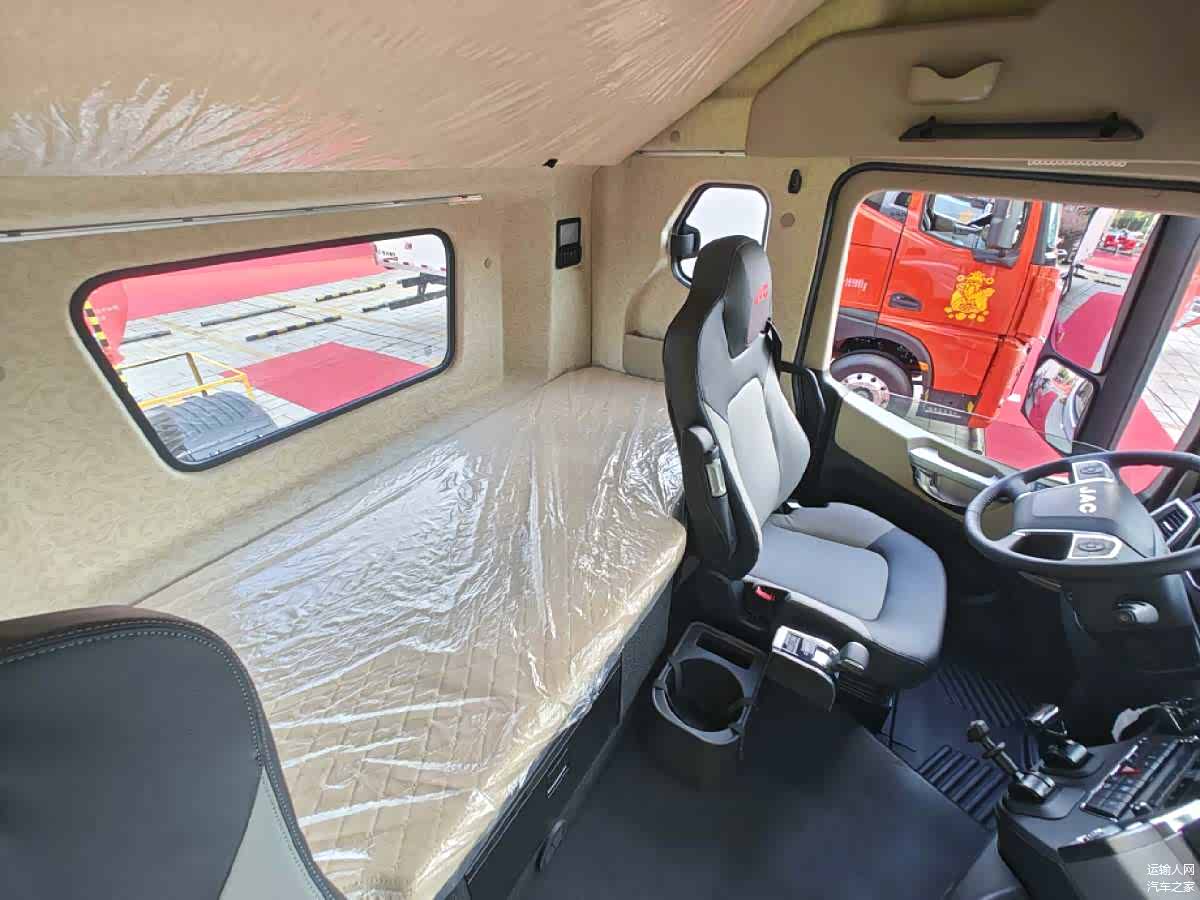 星耀X7重卡的驾驶室采用了平地板高顶双卧设计,整体空间宽敞明亮,910mm的超宽下卧铺和910L容积的超大储物空间,让用户可以得到充分休息和储物。