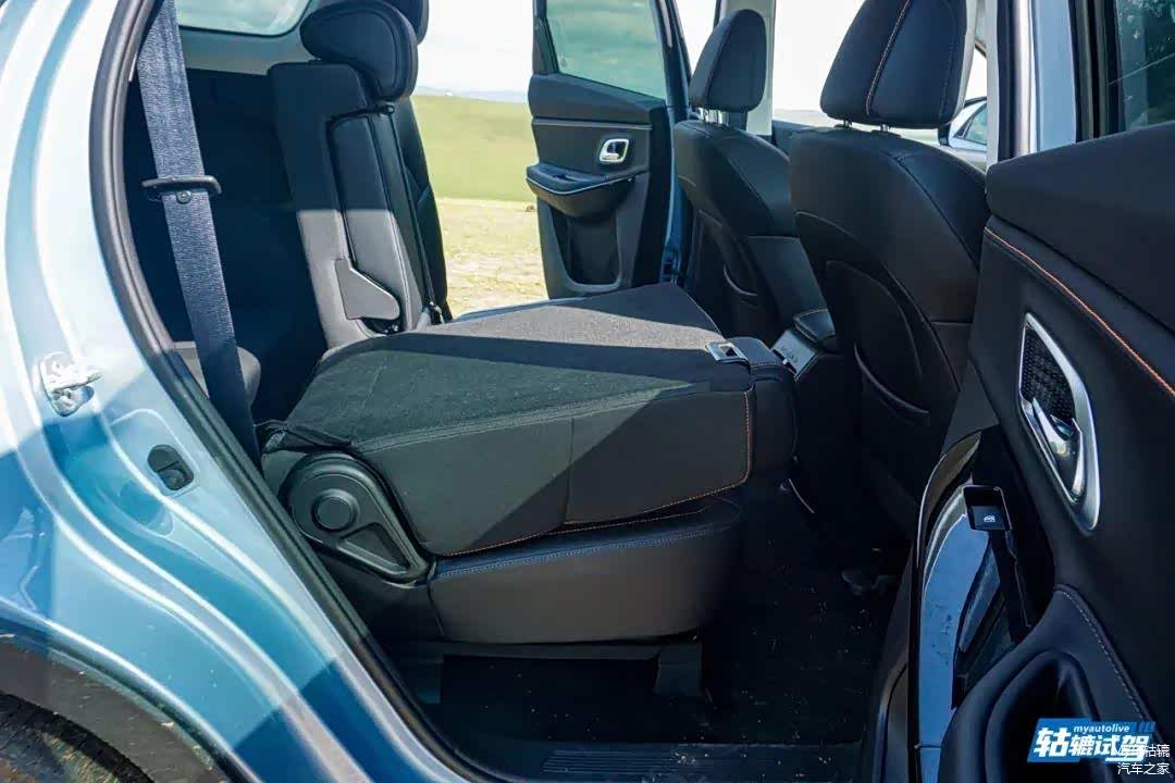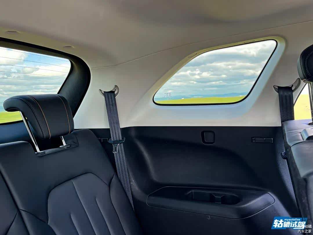 体验后发现,长安欧尚X7 PLUS的第三排并不是“小板凳”,坐垫高度270mm,座椅靠背角度26°,对于腿部和背部都有很好的支撑,减轻长途乘坐的不适感。而且第三排乘客也有杯托和储物盒等,提升了乘车的便利度。第三排车窗的面积足够大,窗外的大草原一览无遗,减少乘车的压抑感。