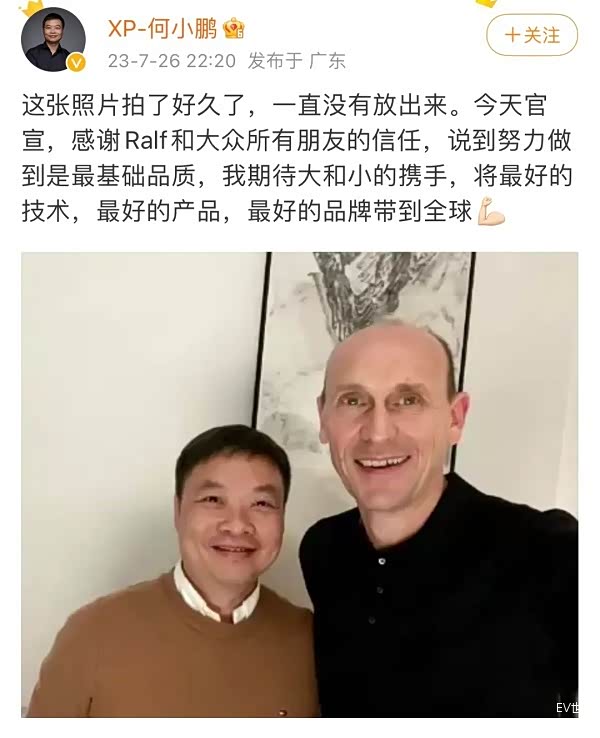 通过联合开发及采购,大众汽车品牌与小鹏汽车将实现显著的协同潜力及成本优势。
