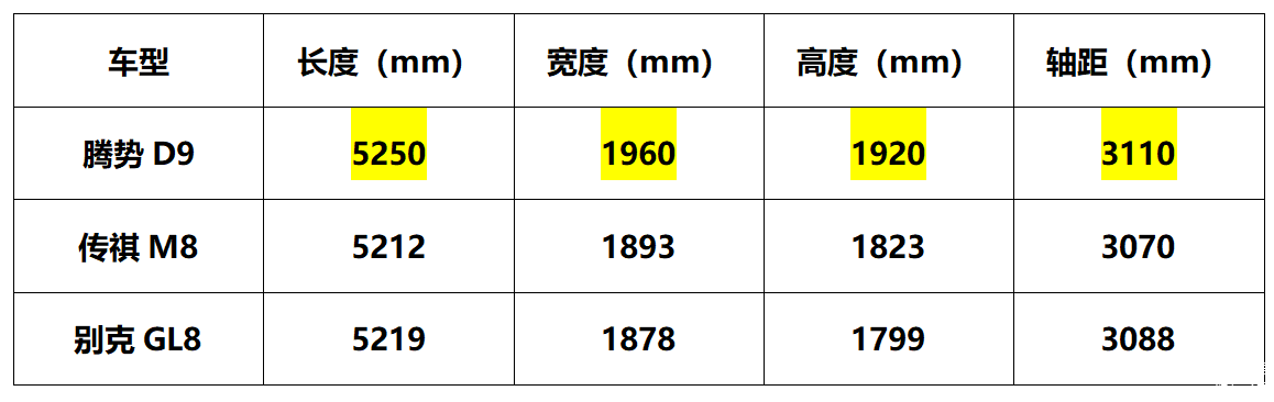 当然,对于以家用用户为主的中大型MPV车型而言,空间与舒适性才是真正的拿分点。D9 DM-i的长宽高分别为5250/1960/1920毫米,轴距为3110毫米,定位中大型MPV,数据优势十分明显,在同级别车型绝对属于第一梯队水平。与之对比,不管是大热门的传祺M8,还是同等价位的别克GL8都要逊色不少。尤其是D9 DM-i的轴距处理,在提供410-2310L超大的后备厢容量的基础上,依旧能为后排乘客保留较大的腿部伸展范围。