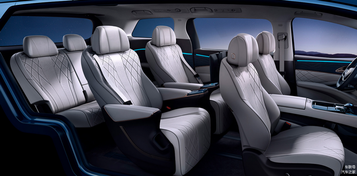 腰身的线条与型面则以平直线为主,配合悬浮式车顶,来削弱中大型MPV定位带来的臃肿感。D柱区域加入了大面积的镀铬装饰条,丰富腰身的元素的饱满度。车尾则跟随潮流,采用贯穿式尾灯组,内部还做了箭矢样式,看着很是洋气。配合干净利落的线条处理,清爽简约。