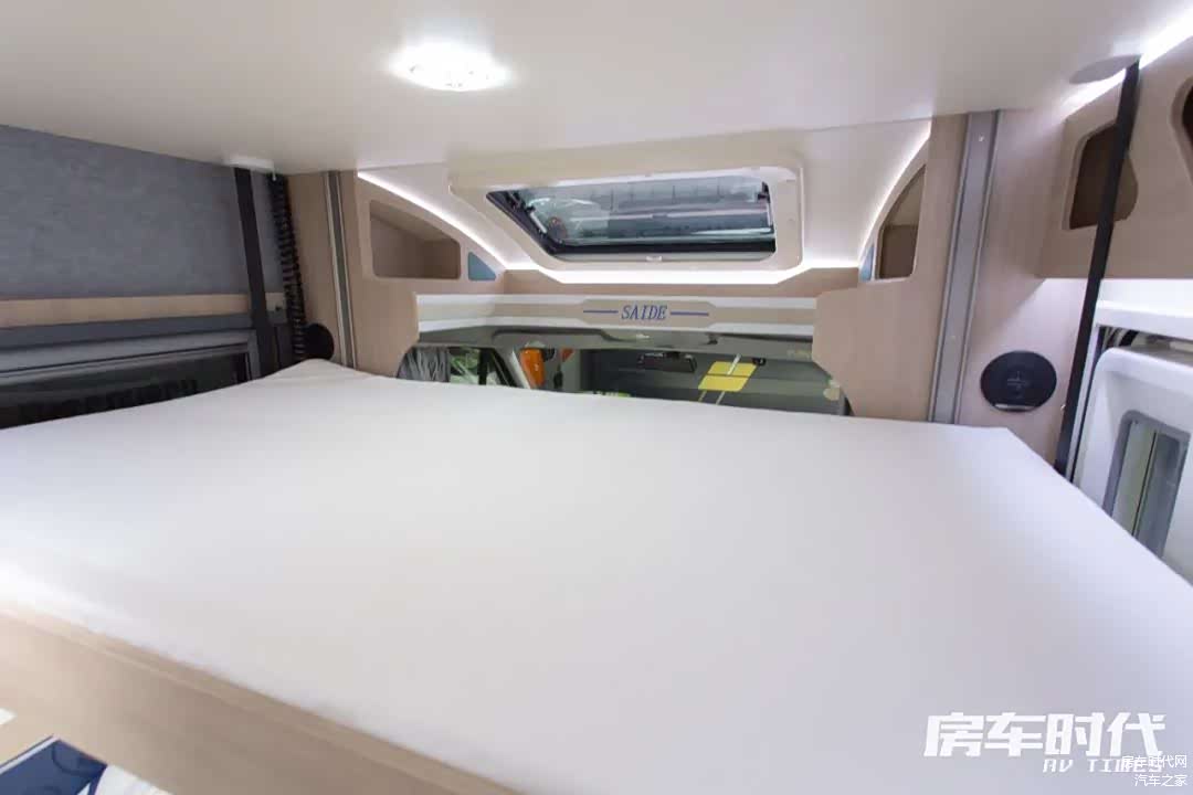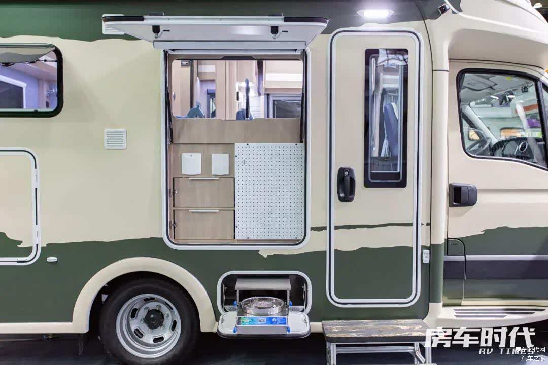 车辆外侧配置有户外淋浴装置、定制遮阳棚(3.5m)、多功能抽拉式灶台、户外插座(220V)、电动伸缩踏步、三眼拖车杠、手动支腿等,其中侧面的储物空间内部做了分隔设计,用户可以更有条理地收纳物品。外侧配置方面,赛德为车友提供了经典美式门、斯比德曼电动遮阳棚、多功能柴油灶等选配项目,用户可以根据需求进行装配。