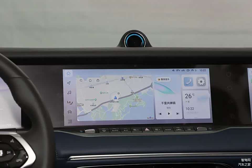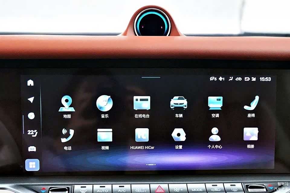 左侧依旧是12.3英寸仪表盘,显示界面清晰不凌乱;中控多媒体屏幕内置与华为深度合作的HiCar系统。
