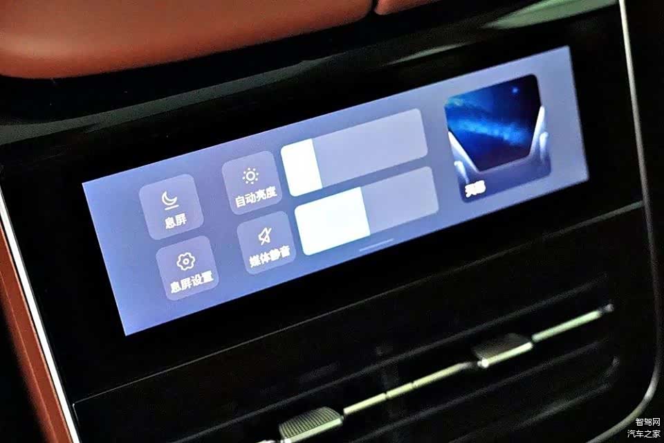 此外,后排新增功能控制屏,在这里可以调节天幕亮度、音乐切换、音量大小和静音控制等。