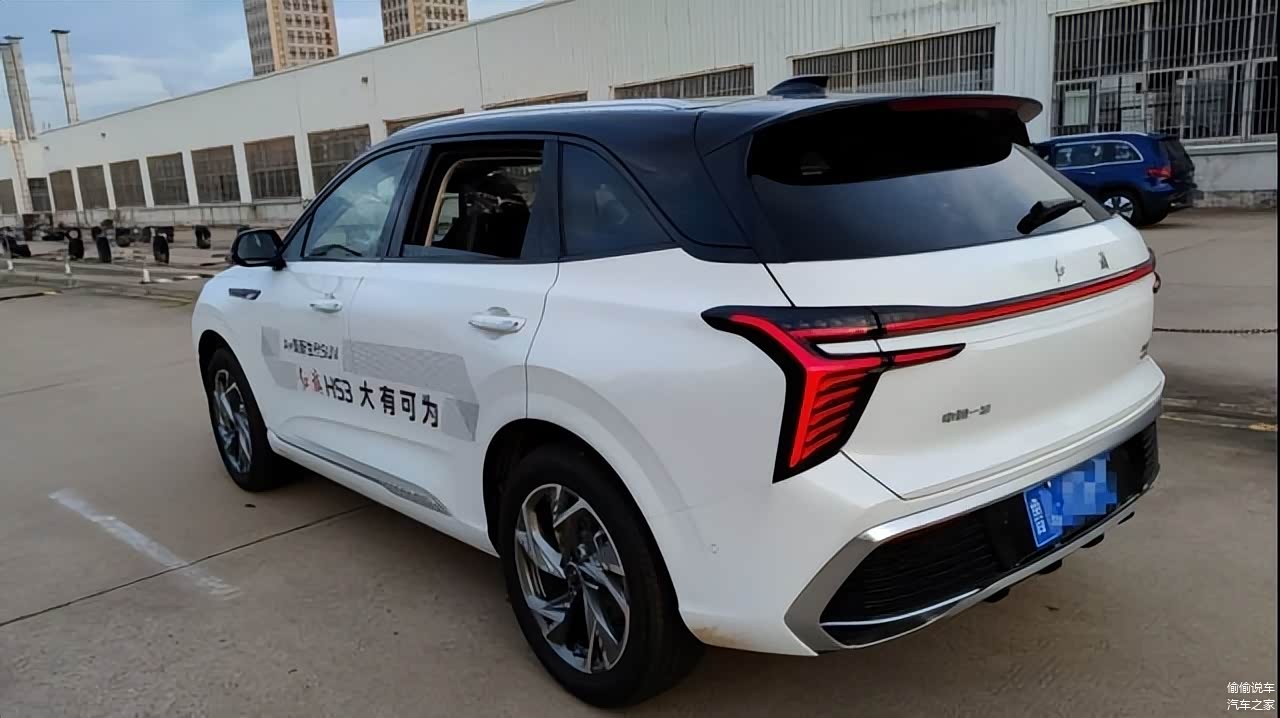 跟HS5一样的感觉喔,第一眼还好吧,有点像新能源?车身尺寸官方规格是4655x1900x1668,轴距2770毫米,看上去害行,你跟我讲这是A+级别我是不信的噢。但是呢,我个人不太喜欢这个前脸,有点眯眯眼的意思。后面贯穿式尾灯,感觉和其他华系品牌同价位SUV相似度高了些,但是还是挺好看的嘛!
