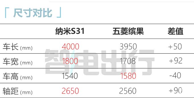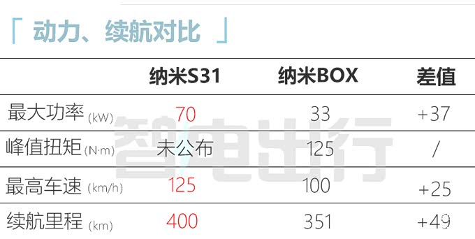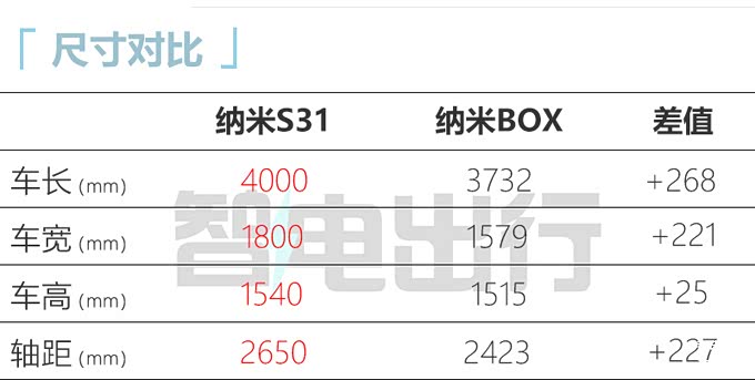东风纳米S31定位纯电小型车,车身尺寸方面,除高度外,账面数据均优于同级竞品五菱缤果。参考家族式设计语言,预计新车将使用纳米BOX同款内饰风格,配备全液晶仪表+中控屏、旋钮式换挡、旋钮式空调控制等,其中顶配车型将配备12.8英寸中控屏,并搭载L2级辅助驾驶功能。
