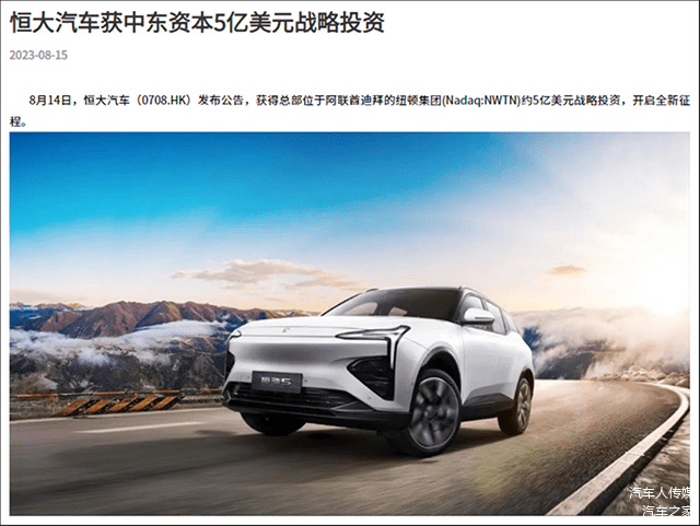 8月14日晚上,恒大汽车发布了久违的好消息,总部位于阿联酋迪拜的纽顿集团(NWTN)向恒大汽车提供5亿美元战略投资,另有6亿元人民币过渡资金在公告后5个工作日内到账。