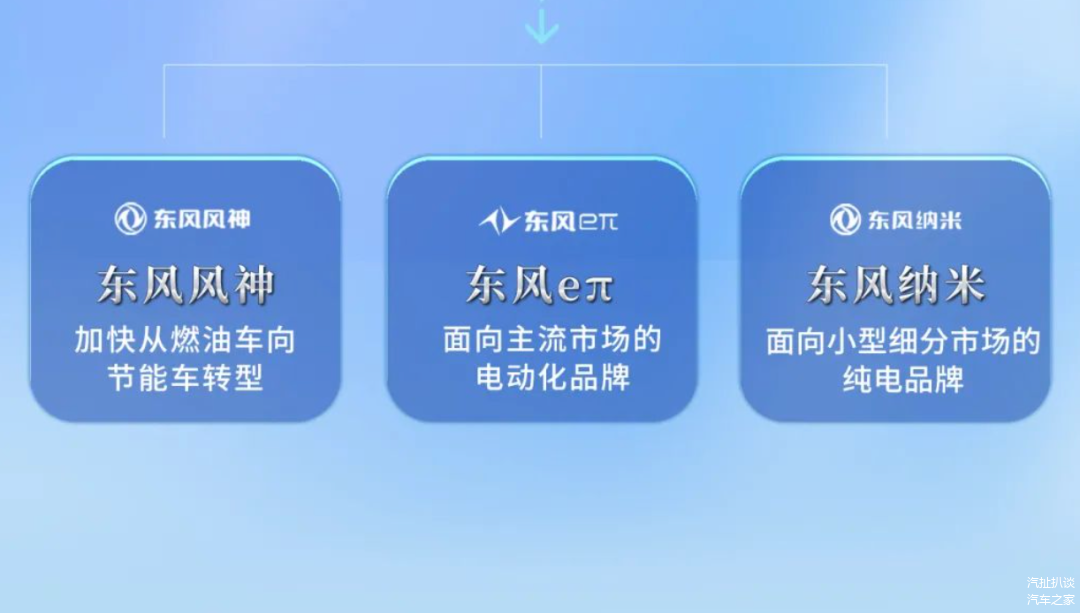 一体化管理下,这三大产品系列品牌定位也进一步明晰。其中,东风风神将加快从燃油车向节能车转型,东风eπ定位为面向主流市场的电动化品牌,东风纳米为面向小型细分市场的纯电品牌,并将于8月23日正式发布。