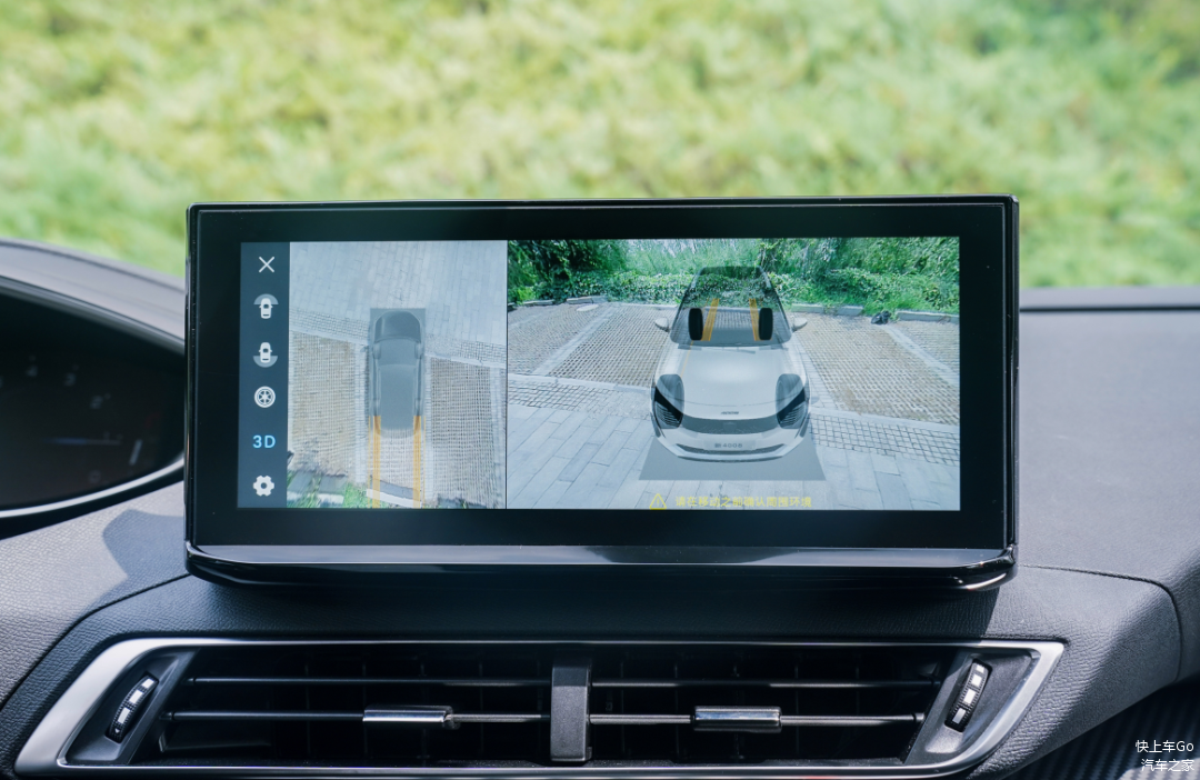新4008的倒车影像升级为360°全景高清倒车影像,继承了转向辅助线,整体清晰度不错,更可选择车侧,轮胎等多角度视觉。透明底盘功能在过弯和倒车时,能提供更具体的车辆位置影像,这套倒车影像的画质和功能性在合资车型里面实属一股清流。