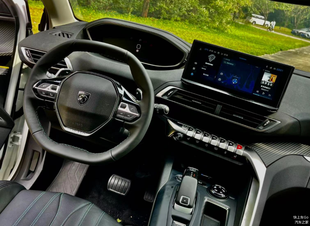 新4008的中控充满战斗气息,相比如今新能源车主推清一色的大屏幕,我更喜欢这套“战斗机座舱”的设计感和仪式感。12.3英寸彩色全液晶仪表盘、10英寸悬浮式触控屏时效果细腻,中控台向主驾驶倾斜,动感的座舱氛围营造得恰到好处。