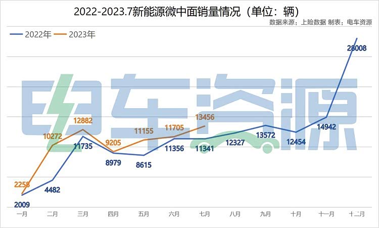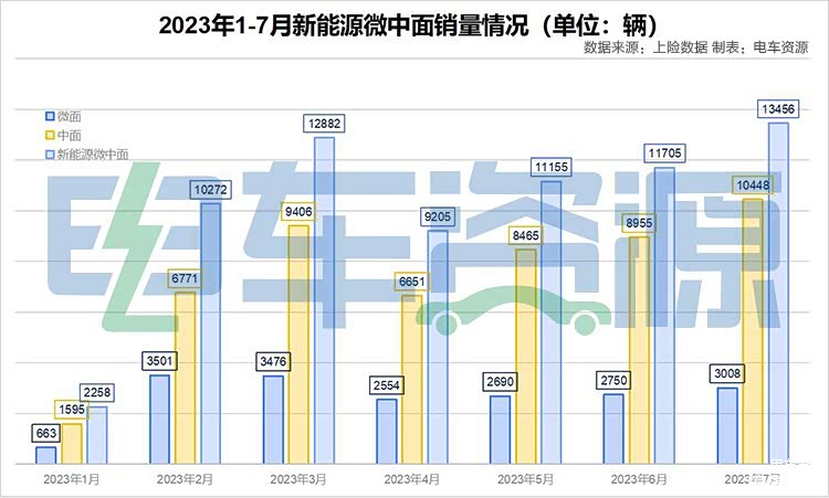 从整体销量来看,2023年销量整体高于2022年,走势和2022年基本一致,呈上涨趋势。1-7月新能源中面合计销量70933辆,如果按照走势判断,销量破10万辆已然不成问题,预计9月或10月见分晓。