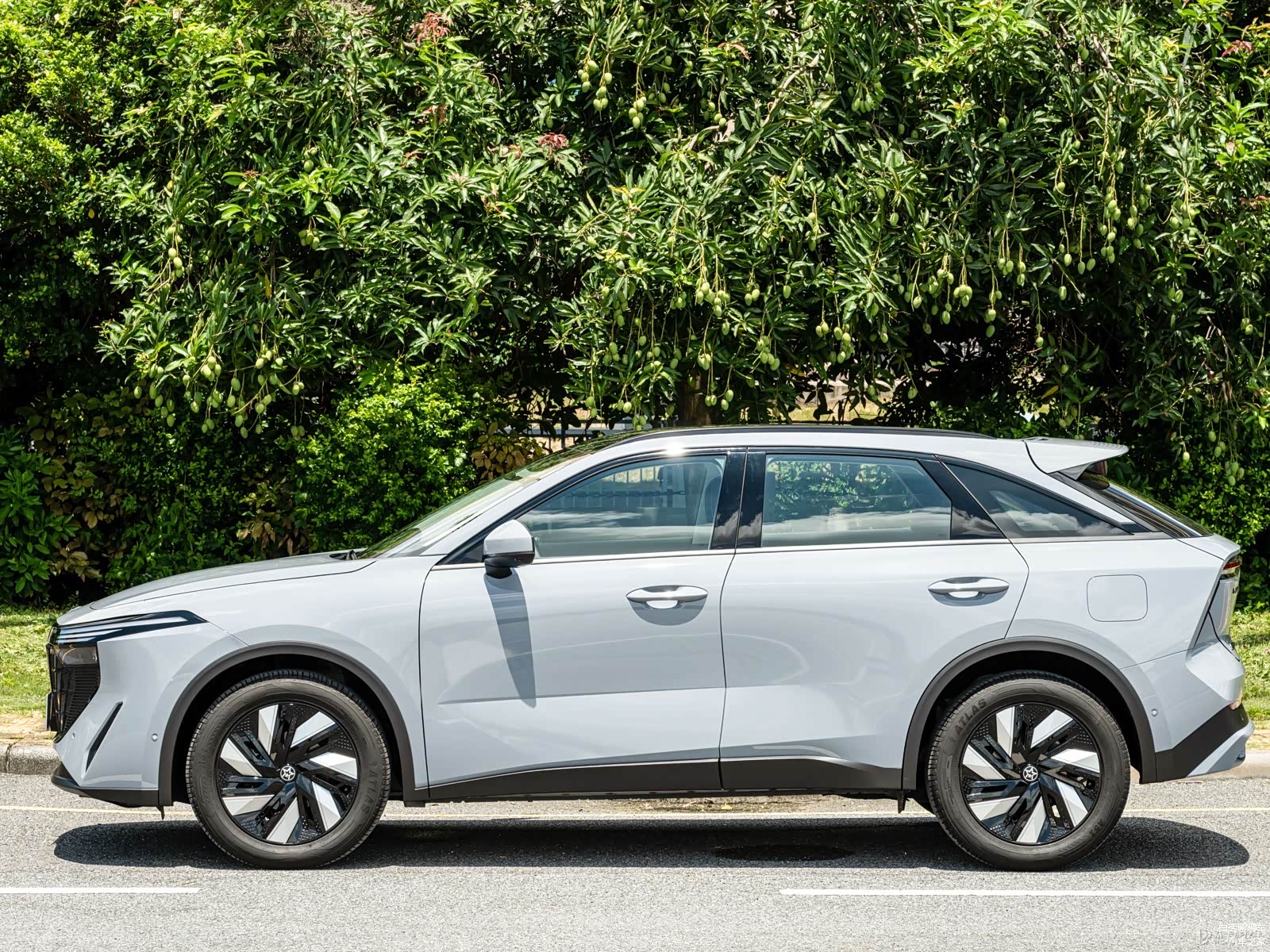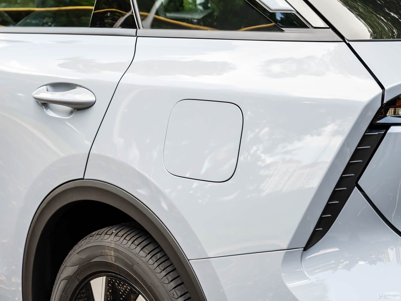 车身侧面的前后侧翼子板微微宽出车体,这种设计增加了车辆的稳定感和力量感,使整个车身看起来更加饱满和有力。这种微微宽出的设计细节在侧面轮廓上形成了一条柔和的曲线,进一步增加了整体车身的流畅感。