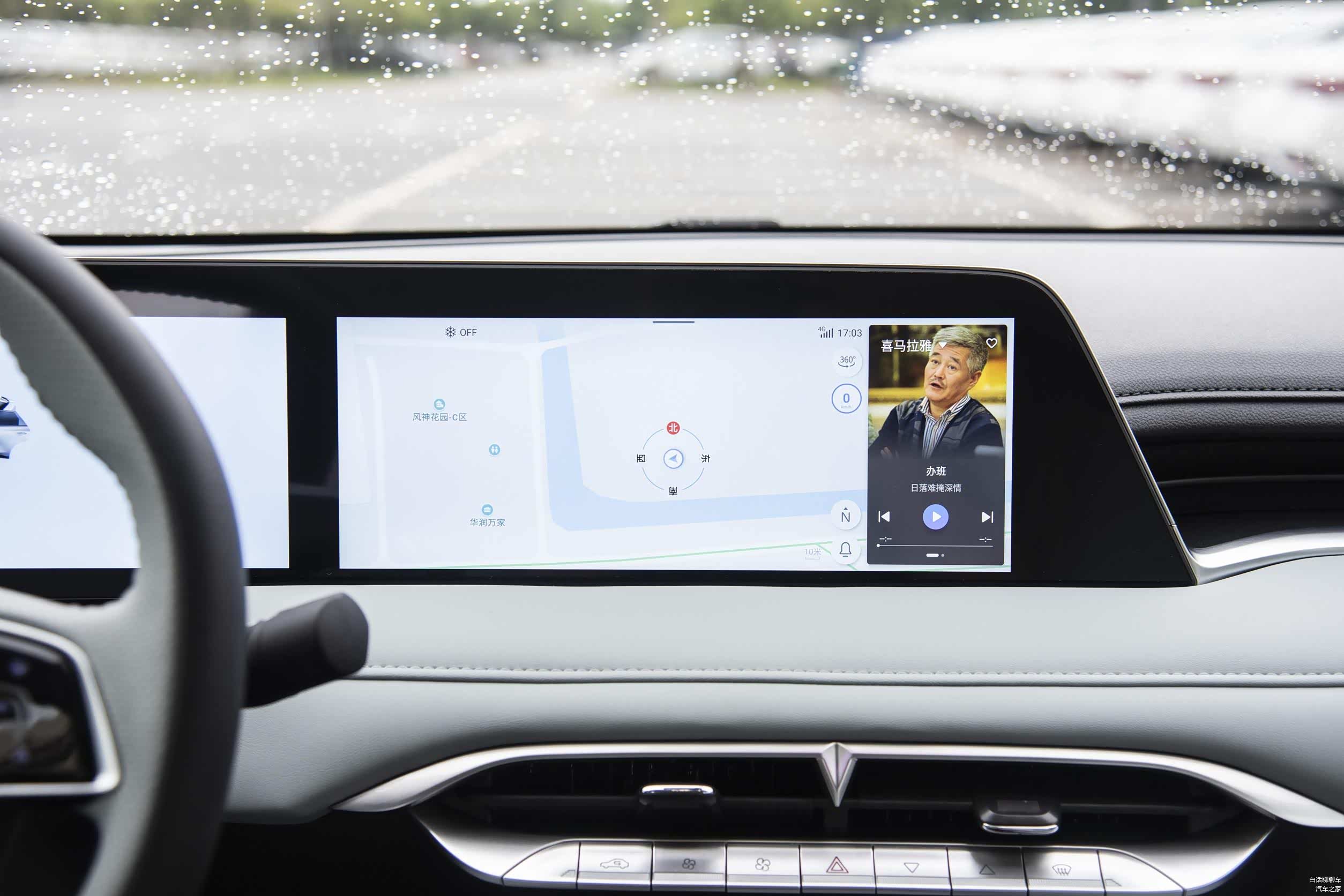 启辰大V DD-i超混动的12.3英寸中控屏界面采用了新颖的设计,以导航系统作为主界面,并通过滑动手势来调出其他功能的显示界面。这种设计带来了足够的科技感,但对于一些常用功能可能稍显繁琐,需要一定时间去适应。