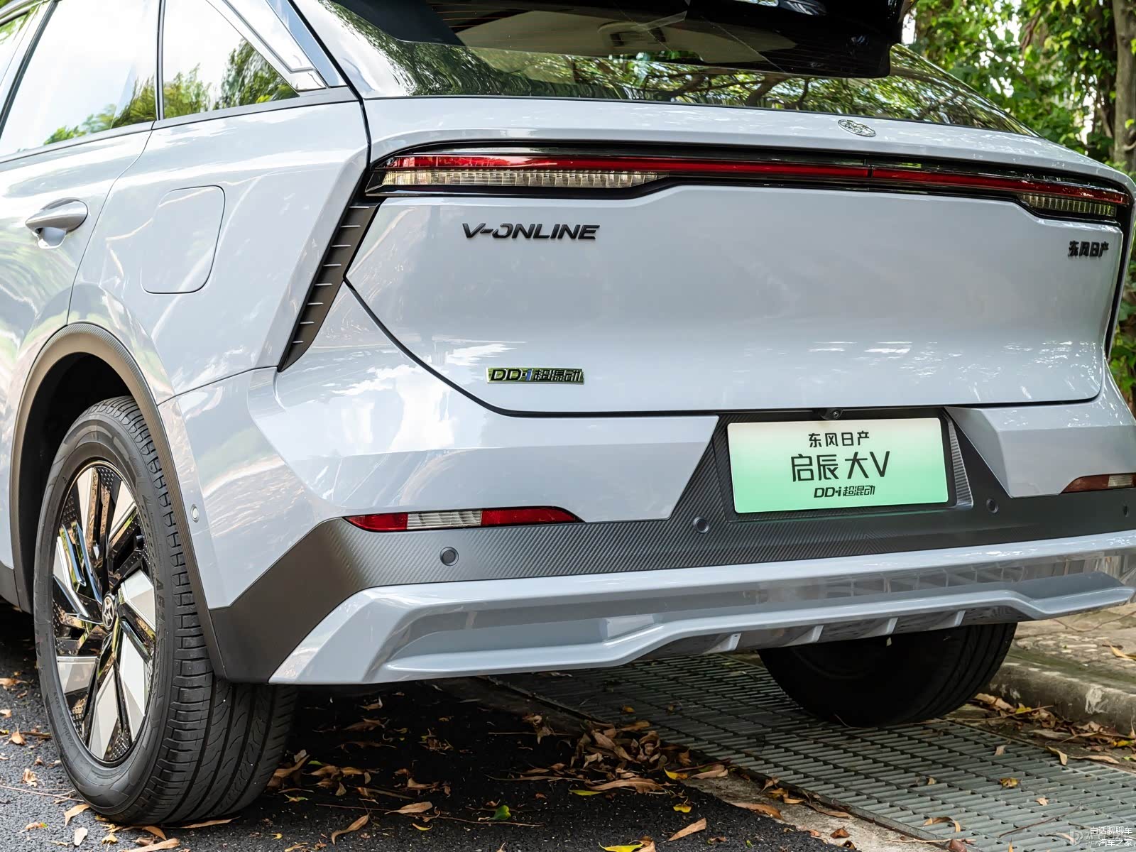 启辰大V DD-i超混动的车尾设计充满了现代感和动感,在细节处理上注重个性化和整体协调。贯穿式尾灯采用熏黑设计,延展至车身两侧后继续向下延伸,这种设计营造出一种时尚、高级的视觉效果。熏黑处理使得尾灯看起来更加深邃和神秘,增加了整个车尾的神秘感和吸引力。贯穿式尾灯的延伸设计也提升了车辆在夜间行驶时的辨识度和安全性。