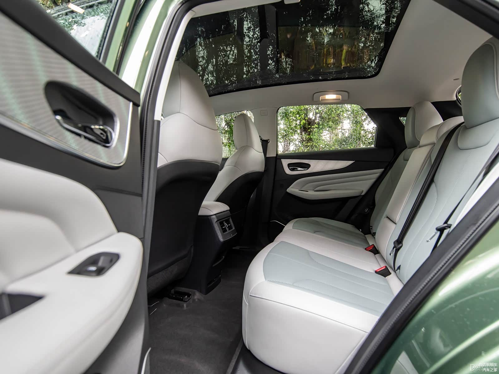 “薄荷绿”:这个颜色选择给内饰带来了一份清新、活力和年轻感。薄荷绿的色调明亮而鲜艳,为车内营造出一种清新和充满活力的氛围。这样的内饰颜色选择与环保、节能的超混动车型相得益彰。