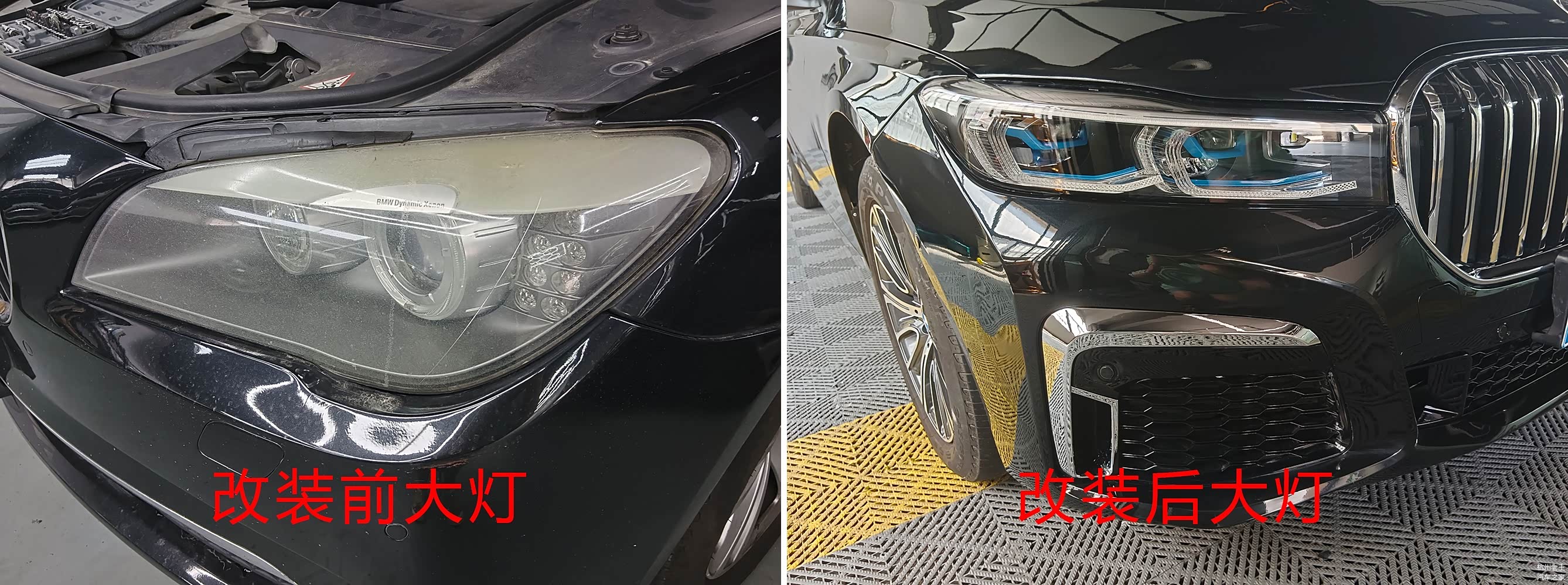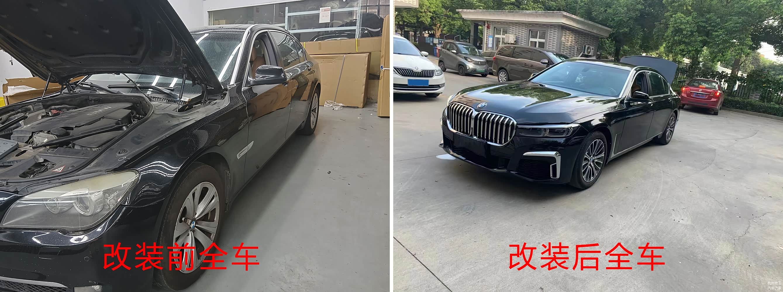一台10来年的宝马7系静静的停在停车场周围已经长满了野草习惯了这里的生活在这里每一辆车都有不一样的故事。有的与他主人征战商场赢得数不清的金钱,有的曾今与他主人跨过山河大海到过别人到不了的地方。而他也有自己的传奇。随着时间的流失,已经失去了曾经的光辉,回想起10年前也是那么的吸引目光,而现在的处境,除了惋惜,更多是无奈。他知道世间有种整容术,能升级成新款,当他到改装店门口。他不知道接下来会发生什么,但是他知道似乎一场改变即将降临到他头上。没有人知道他有多开心。过程是残酷的结尾是美好的。首先大灯机盖前后包围叶子板后尾箱盖, 贯穿式尾灯、除异味、座椅皮重新包覆、m5方向盘气囊 水晶三件套 多媒体刀锋大屏脚垫。