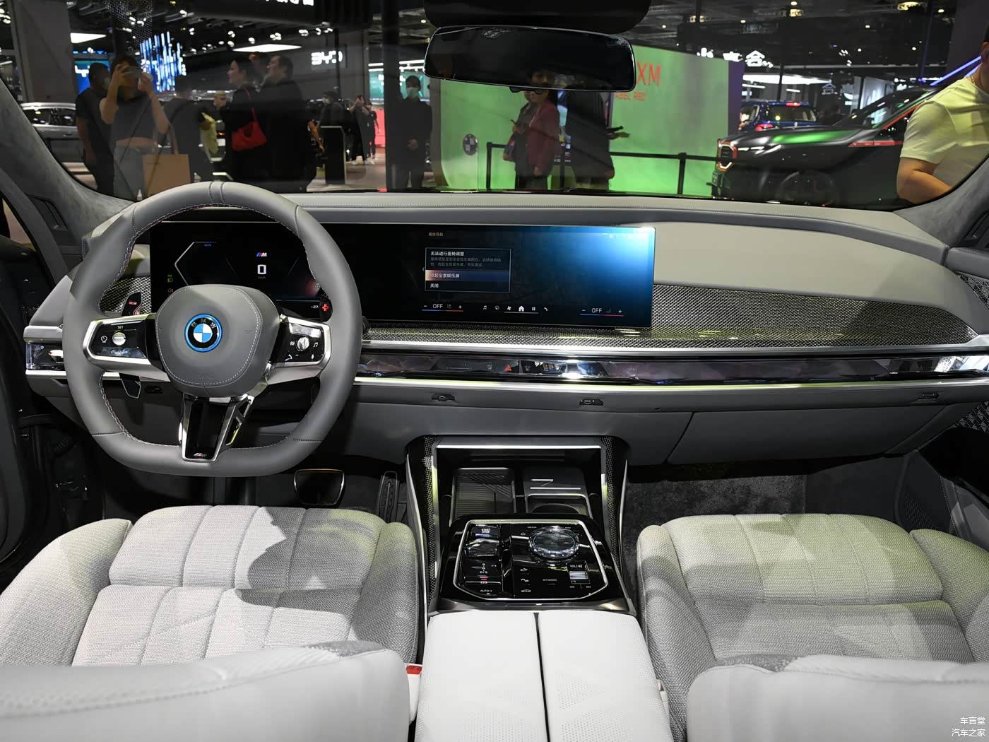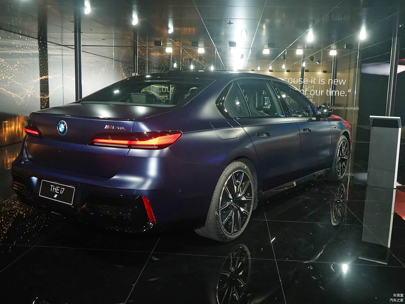 首先是宝马i7 M70L,在宝马推出革命性的7系之后,作为同平台电动版宝马i7也同样备受关注。两者在外观、内饰设计方面保持了高度一致,极富辨识度的外观也引来了诸多争议。本次车展亮相的i7 M70L是一款性能更加强大的电动7系,搭载BMW eDrive电驱系统,前后桥双电机布局,综合最大输出功率高达660马力,峰值扭矩高达1100牛·米,0-100km/h加速时间仅需3.7秒,宝马i7 M70L的CLTC纯电续航将超过600公里。
