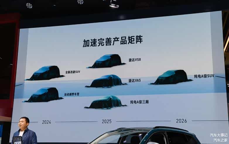值得一提的是,捷达还表示将加速完善产品矩阵,2024年会推出全新改款SUV和运动越野车型,2025年推出捷达VS8和捷达VA5,以及首款纯电动A级三厢车,2026年推出纯电A级SUV。