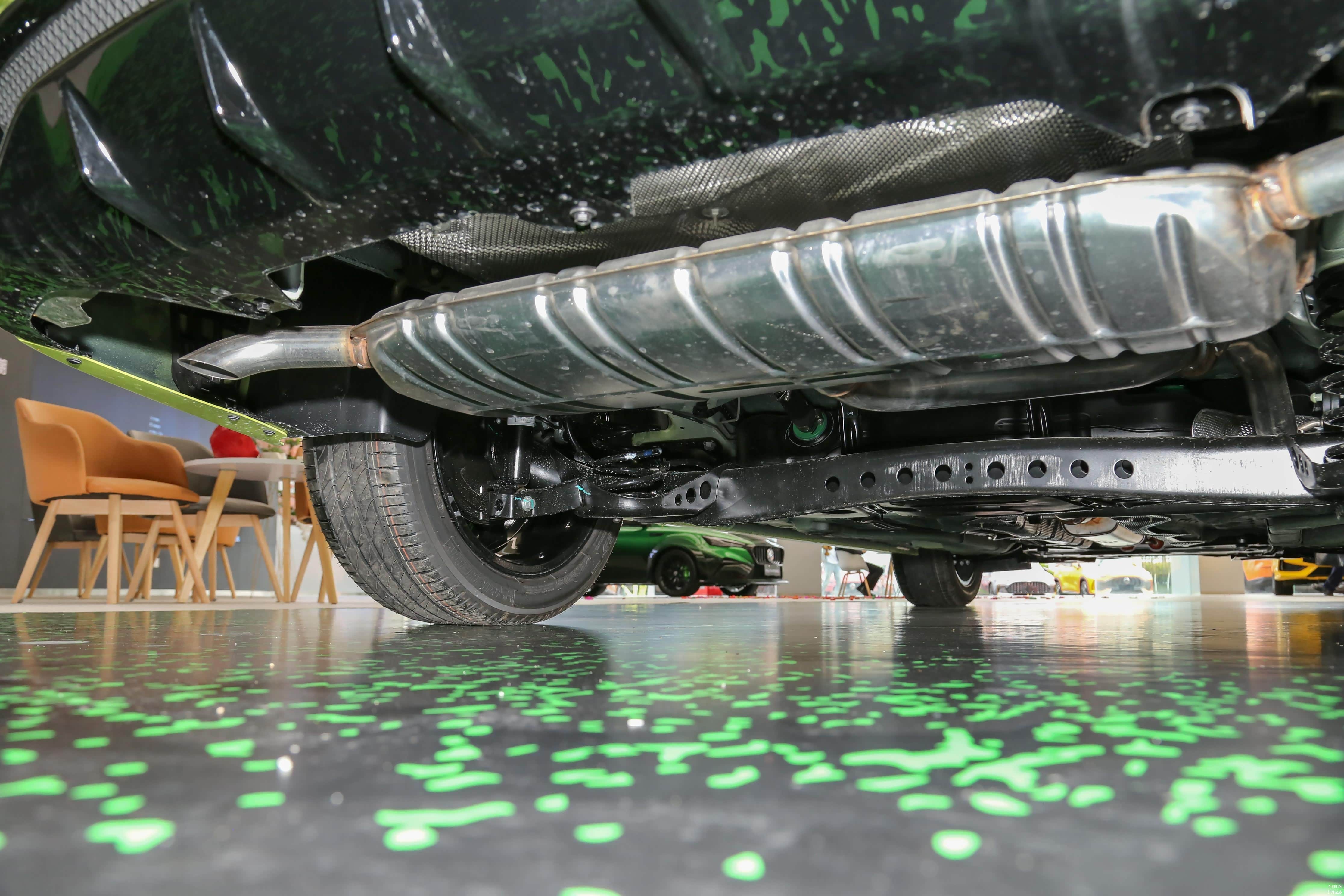 车身侧面,整体比例匀称,采用了溜背式的设计,车辆并没有采用较多的线条进行修饰,相反整个风格偏于圆润饱满。大尺寸的轮毂配合着熏黑的车窗还是拥有着不错的辨识度。而尾部方面,尾灯进行了熏黑,下方排气筒为双边共4出的造型设计,并配以黑色饰板进行点缀。上方后备箱处也配有熏黑,在细节上都加入了碳纤维的贴膜装饰。