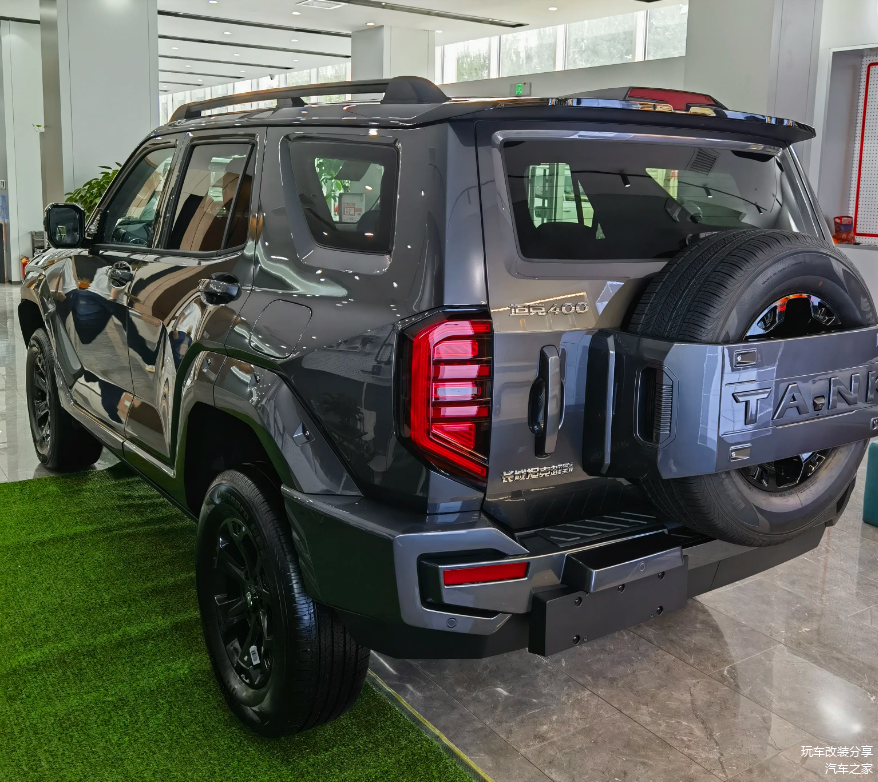 其实早在数月前,网络上就有坦克400实车照片露出,近段时间新车也陆续到店,外观采用粗犷的双横辐中网、“凌厉风刃”车身线条、铆钉野性轮拱、外挂备胎等元素充满了野性和玩味。