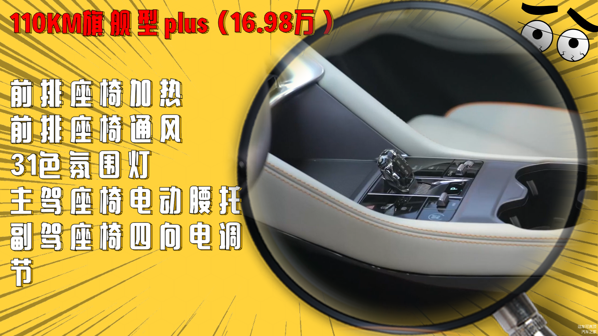 所以加1万块钱,比入门款多了12项配置的110千米旗舰plus型,是绝大多数消费者更好的选择。该版本相对旗舰型多了主动刹车,车道偏离预警,自适应巡航,车道居中保持,道路交通标志识别,前方碰撞预警等安全配置,还有前排座椅加热通风,31色氛围灯等舒适性配置。主驾座椅还增加了电动腰托,副驾座椅也从手动调节升级为四向电调节。这个版本就相当合格了,安全配置齐全,座椅方面的配置也足够舒适,是目前冠军版插混宋plus最热销的一个配置,占此车总销量的六成左右。