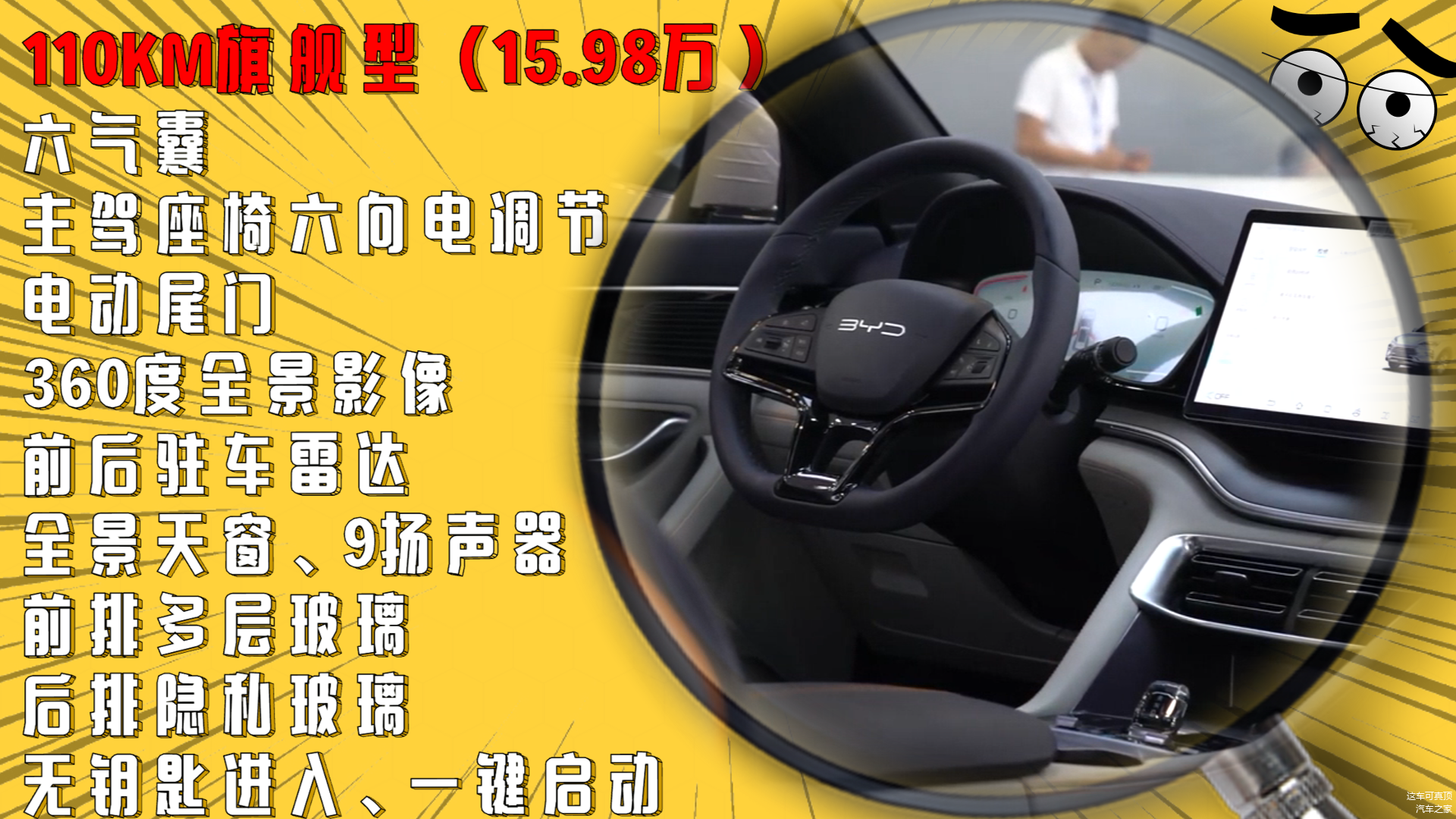 星巴克起步就是中杯,没有小杯。现在插混比亚迪宋plus起步就是旗舰型,根本就没有低配。不过看过配置后,发现入门款也算对得起旗舰这两个字吧。15.98万的110KM续航旗舰型,标配了全车六气囊、主驾座椅六向电调节、电动尾门、360度全景影像、前后驻车雷达、全景天窗、9扬声器、前排多层后排隐私玻璃、无钥匙进入一键启动等功能,确实没太有丐版的感觉,但现在消费者都要求很苛刻,“温饱”问题很好解决,但大部分人现在追求的是“小康”水平。