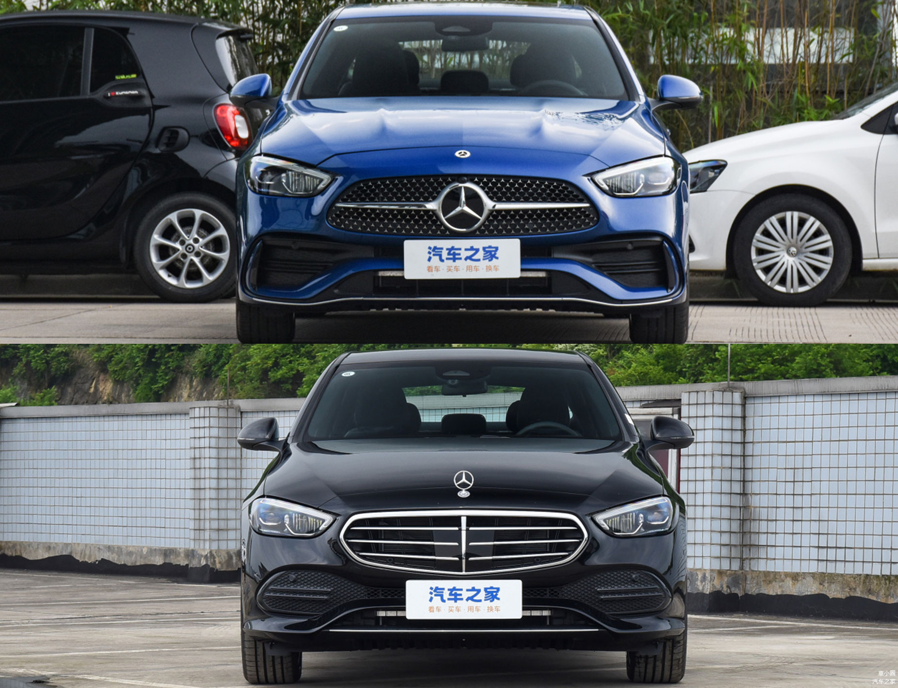 奔驰C级提供大标版和立标版两种设计,前者采用梯形进气格栅,配合硕大的星辉LOGO和单横幅饰条,看起来时尚感十足;后者采用钻石型进气格栅,搭配多横幅式镀铬中网,看起来更有气场,不过个人感觉立标版这套前脸似乎更匹配E级和S级,放在奔驰C级上显得有些不太搭调。
