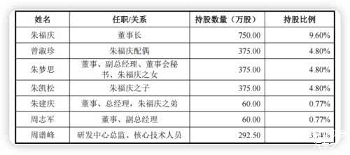 据招股书披露,截止至招股书签署日,朱福庆直接和间接控制皇派家居71.23%的股份表决权,朱福庆之女朱梦思直接持有公司4.80%的股份,朱福庆和朱梦思合计控制公司76.03%的股份表决权,二者为公司的共同实际控制人。朱福庆在公司任董事长,朱梦思在公司担任董事、副总经理、董事会秘书。