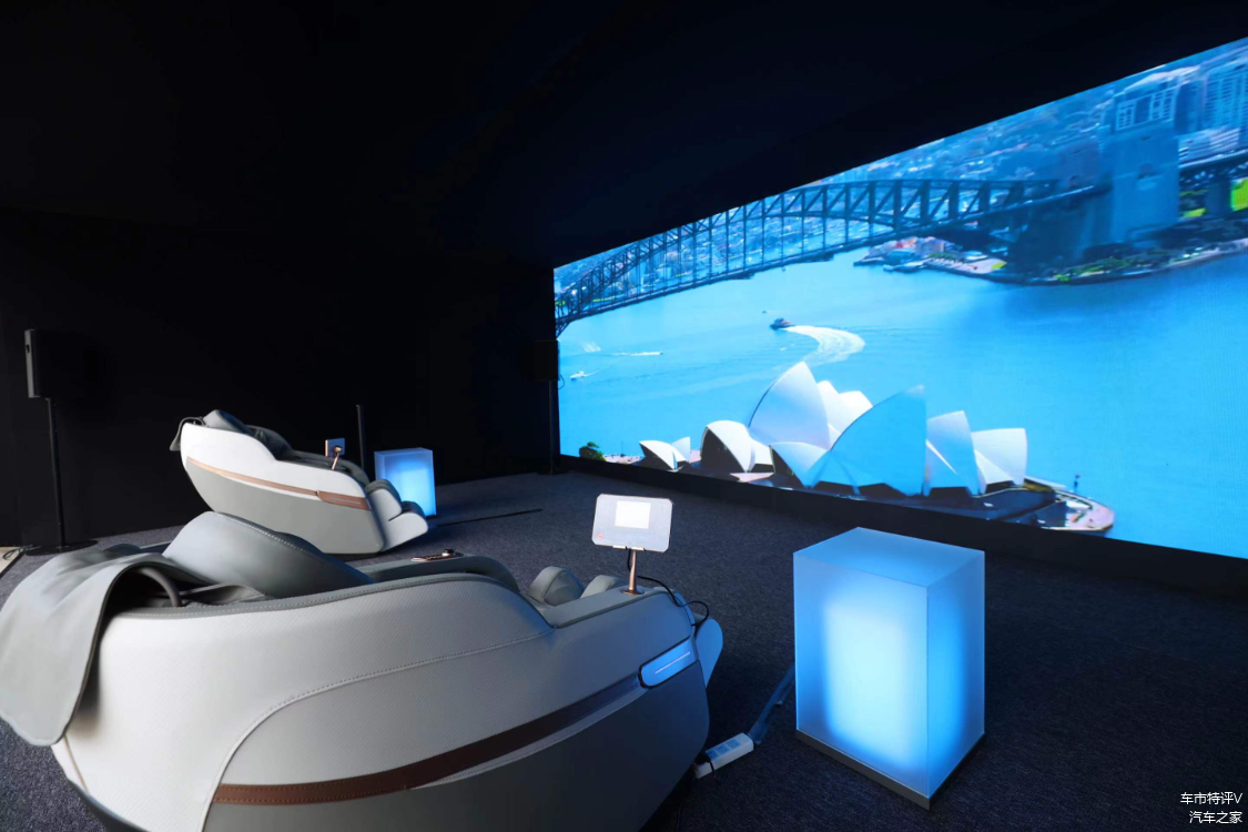 笔者体验中,调整到休憩模式后,可以根据停车场景和环境来选择小憩、冥想、神游等多种车内场景,而这些场景甚至能结合座舱声光电能力,来联动视觉、听觉、嗅觉、触觉和温感等等,让用户在极致的休憩空间中,彻底放松身心,瞬间进入第三空间,有一种穿越的感觉。