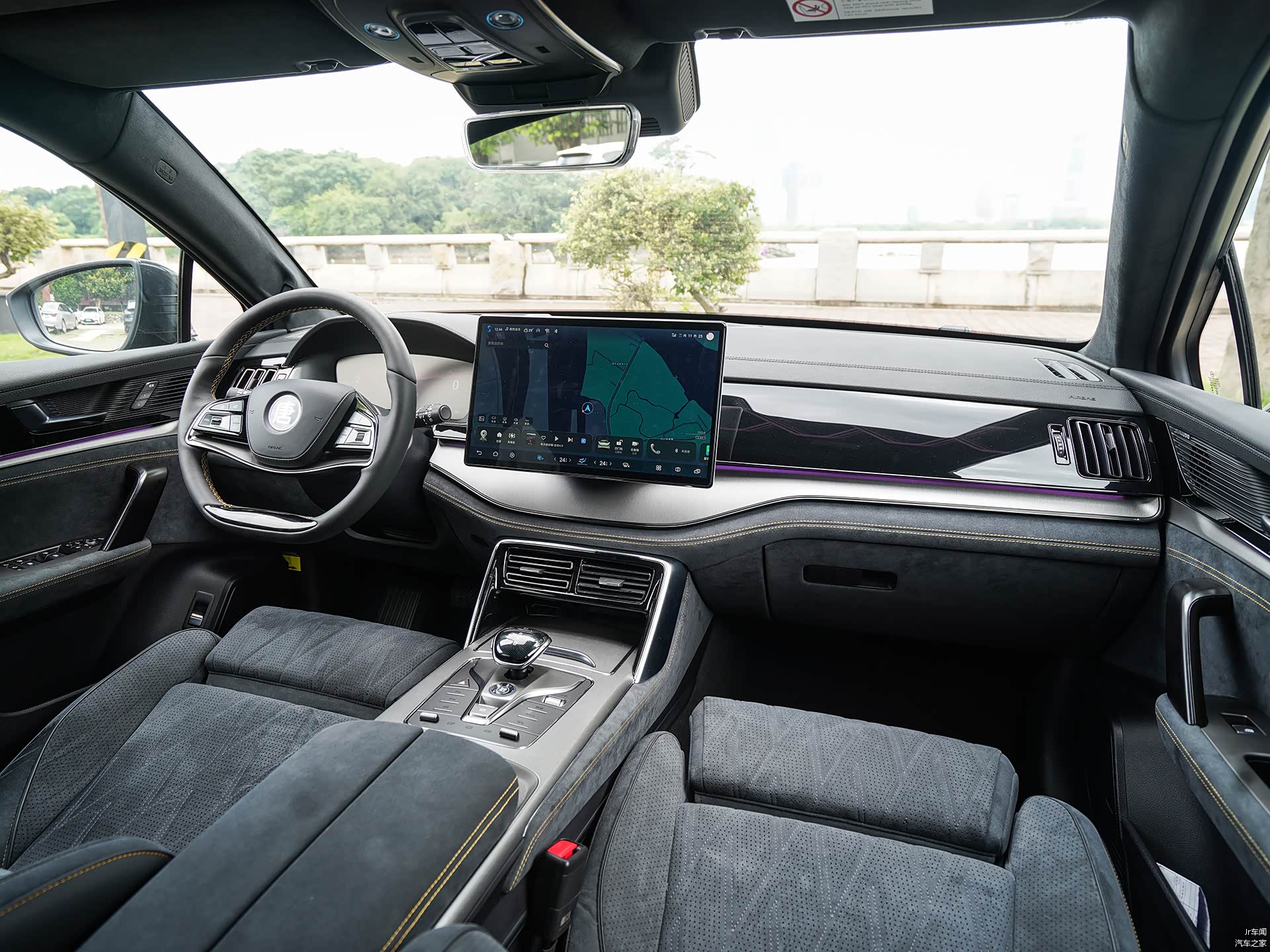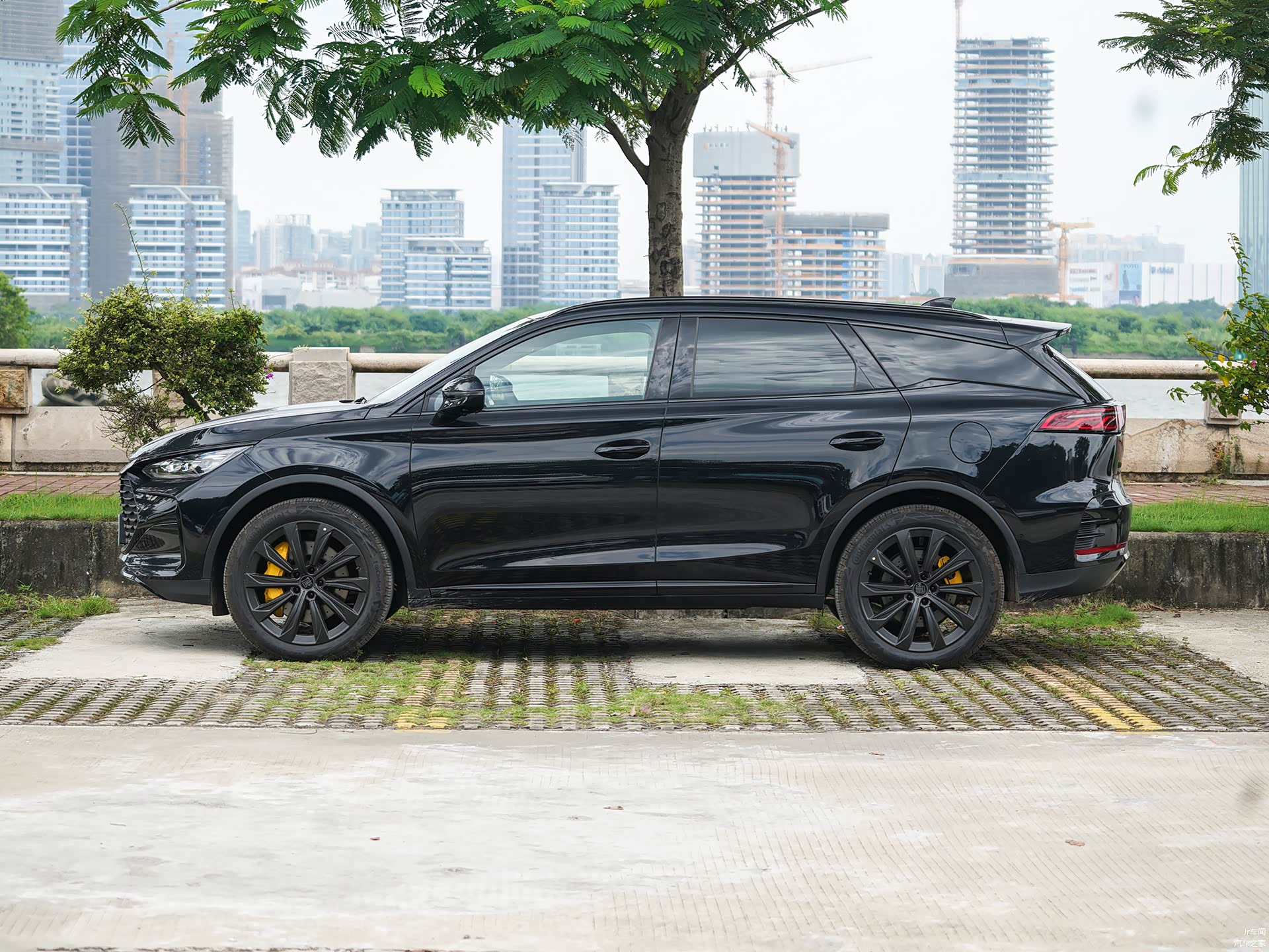 动力方面,它搭载了骁云1.5T发动机和EHS电混系统,其中发动机及前电机跟DM-i是相同的,但是后轴相对增加了全新开发的后驱三合一总成。据官方介绍,它的综合功率达到了615马力,0-100km/h加速时间仅需4.3秒。
