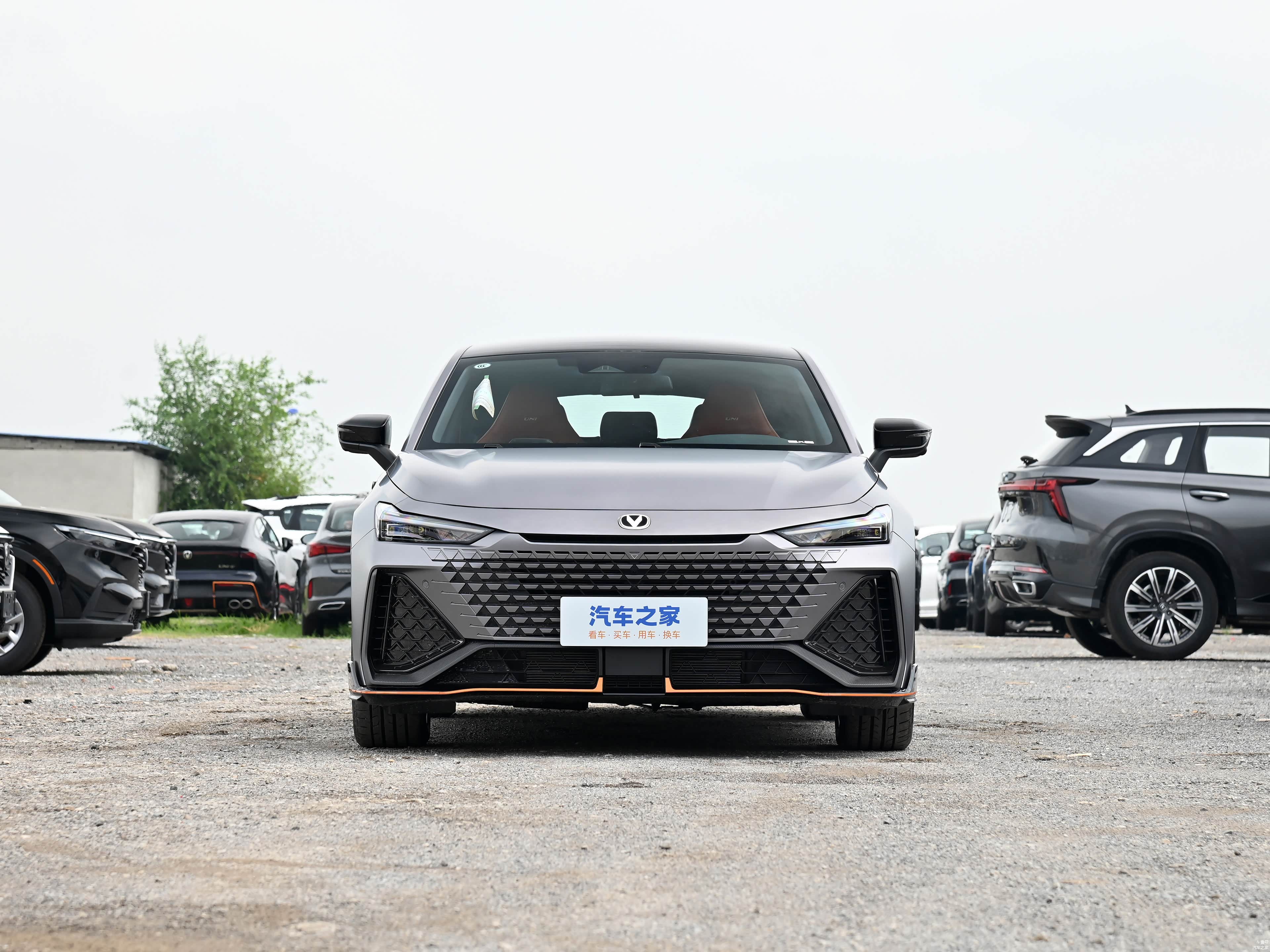 长安UNI-V的造型颇具特点,车头格栅采用无边界设计,这也是长安UNI系列的一个标志性元素。格栅两侧配备了大尺寸黑色网格结构,提升了车头的运动氛围。来到侧面能看到明显的溜背设计,后轮眉处还有明显的外凸,搭配同级燃油车上少见的隐藏式门把手后,让侧面观感更接近跑车。车尾还配备和奥迪A7类似的电动扰流板,下方还有大尺寸的双边共四出圆形排气口,提升了整车运动元素。