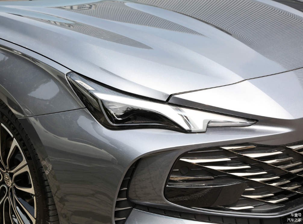 名爵MG7的外观辨识度很高,车头的视觉重心靠下,搭配横向贯穿的下置进气格栅,让车身呈现出低趴的宽体姿态。两侧大灯的造型很犀利,内部加入类似箭头状的灯带,下方还有纵向的进气口结构,让车头看起来足够年轻。侧面同样配备流畅的大溜背,腰线则采用分段设计,搭配多辐式轮毂后,让侧身有种豪车的感觉。尾部同样配备双边共四出式排气口,部分车型配备有电动扰流板。