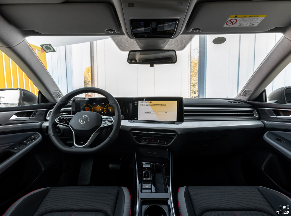大众凌渡L也配备双联屏,不过两块屏幕中间自带折角,这一点和多数双联屏是不太一样的。副驾驶前方的空调出风口为横向设计,贯穿了副驾驶前方的面板,搭配按键式挡把后,也提升了座舱内的设计感。