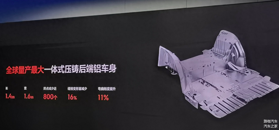 之所以使用的压铸机吨位更大,很大原因是极氪旗下产品尺寸本身就很大,例如 极氪009(图片 | 参数 | 询价)是一款车长超过5.2米的MPV,车身宽度也超过了2米,相比之下,Model Y的车长不到4.8米,车宽超过1.9米,所以极氪009一体式压铸后段铝件身长度达到了1米、宽度为1.6米,体积远大于特斯拉。