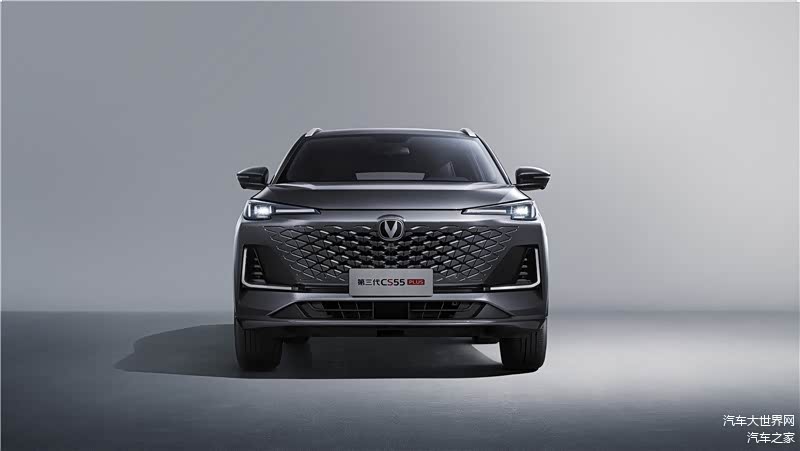 外观方面,第三代长安CS55PLUS采用最新家族式设计语言,看起来更具气势。前脸采用无边界的进气格栅,格栅内部为点阵式布局,搭配两侧犀利的大灯造型与进气格栅两侧的L形镀铬装饰,如同自带光环,进一步提升了前脸的高级感。