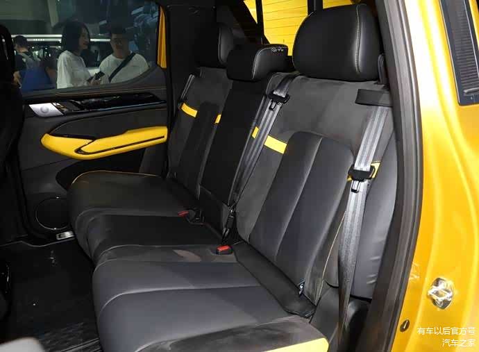 前排座椅支持电动调节,并配备加热、通风功能,座椅设计很宽大,肩部还做侧翼延展,能很好承托身体。后排座椅也支持电调,后排靠背角度最大可达33°,对于后排乘客的乘坐舒适度有着积极作用,一改往日皮卡后排坐人不舒服的情况。