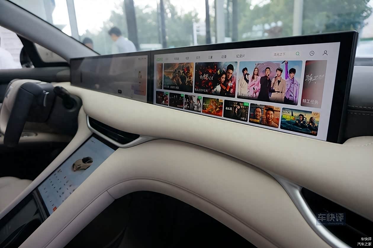 动力上新车搭载了双电机,全系配备三元锂电池。最大功率579千瓦,最大扭矩800牛米,零百加速不到3.5秒。新车还搭载了“准900V”和“准500V”双平台,不仅满足了不同用户的用车需求,还可以在80%的公共充电桩上实现近9成的满电充电功率。