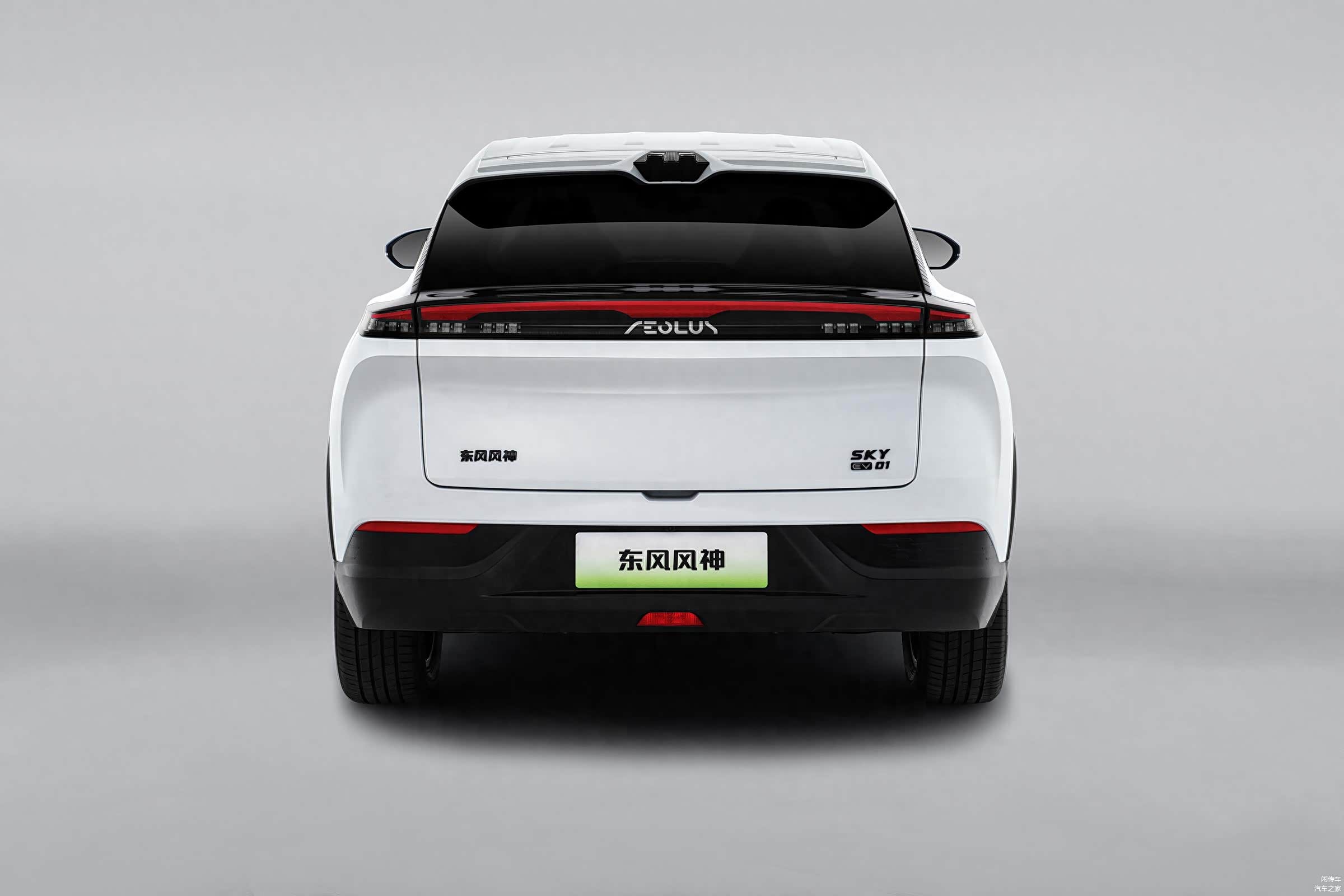 在车身侧面,新车当然与皓极车型完全一致,相对短小的线条,略带下坠的车顶,低矮的车身姿态,特殊的D柱交接,悬浮式造型都没有缺席,错落式的隐藏的车门把手刚好沿动感的腰线排布,而大尺寸气动轮毂也有效的增强了新能源的属性。在车身尺寸方面,新车三围达到4670/1900/1613毫米,轴距为2775毫米。在车尾部分同样与号机基本一致,标志性的位置很高的位于后风挡下方的红色灯带主要两侧引申出了纵向的白色灯组,下方镶嵌有风神字母车标。